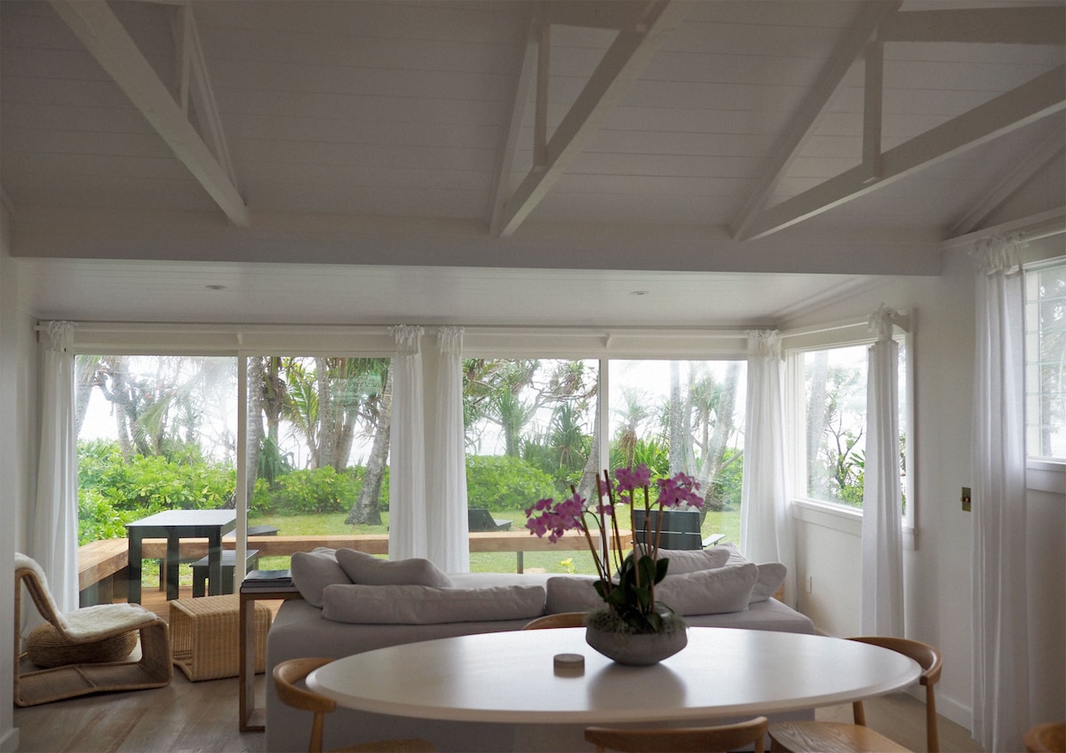 Este moderno y recién renovado refugio de playa para lunas de miel tiene impresionantes vistas panorámicas al mar y a la costa. Relájate en el sofá cama mientras contemplas la amplia vista desde el arrecife de Anini hasta el faro de Kilauea. Algunos han dicho que «se siente como estar en un barco en el mar» mientras presencian cómo las ballenas rompen en el océano y las olas rompen en el arrecife desde este lugar mágico. Una rara unidad de ático con techos altos, vistas desde todas las habitaciones, incluso el famoso Bali Hai desde la terraza. ¡Verdaderamente el sueño de una pareja!