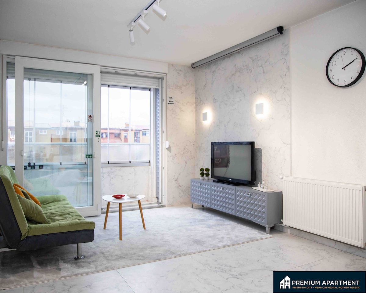 Este luminoso apartamento en la azotea se encuentra a poca distancia a pie del centro de la ciudad. El apartamento es amplio, está muy bien decorado y tiene unas vistas magníficas de Pristina desde el balcón. Cuenta con todas las comodidades necesarias, como lavavajillas, lavadora, TV inteligente y wifi muy fiable. Puede alojar cómodamente hasta 3 personas. Royal Mall a 1 minuto a pie, la calle B está a 3 minutos a pie, mientras que el centro (Grand Hotel) está a 10 minutos a pie. ¡Y relájate en este alojamiento tranquilo y elegante!