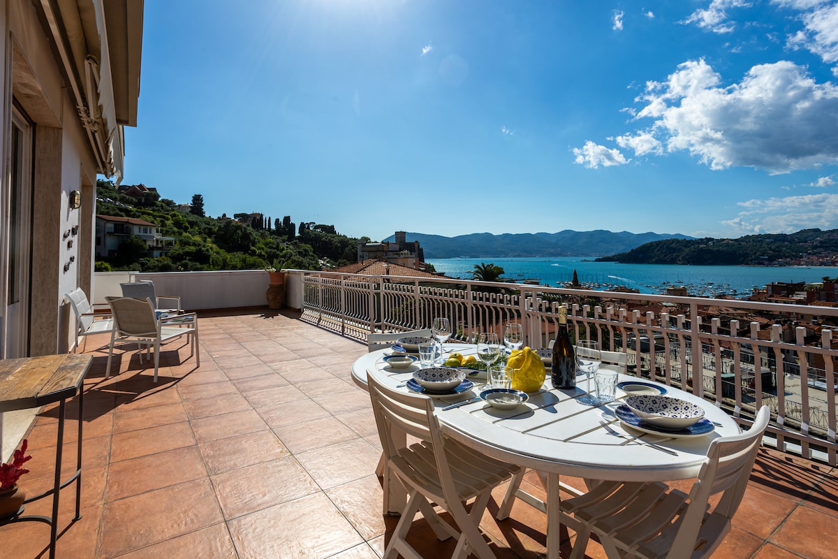 Luxury apartment in Lerici overlooking the gulf with two designer bedrooms and bathrooms, large open living room and kitchen space perfect for dinners and socializing. Next to the building is a set of stairs that takes you down to the main piazza in Lerici in 5 minutes. The main square is full of restaurants, bars ice cream shops and everything you may need. You can sit back and have an Aperol Spritz in the evening while watching the sunset along the sea. Free parking but smaller car is required