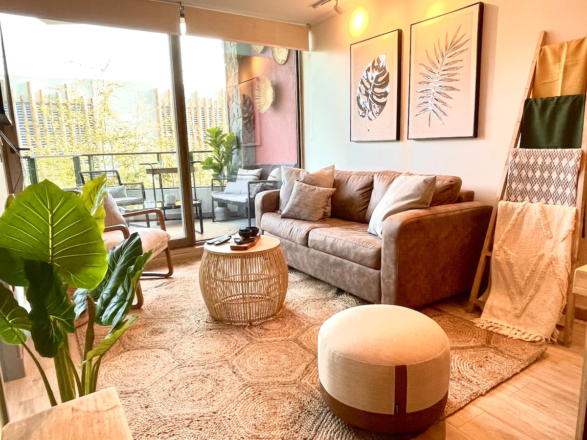 Nuevo y acogedor estudio en la mejor ubicación de Pucón, a pasos de playa grande, centro, y aislado del ruido de la calle principal. Cuenta con cama de 2 plazas, un futón de 2 plazas, cocina full equipada, baño completo, WiFi, TV 49" con Netflix, Disney+ y más, terraza, calefacción, parrilla, cafeteras, 2 bicicletas de uso ilimitado, entre otros. Estacionamiento público frente al acceso al edificio disponible. Incluye ropa de cama, toallas, e insumos básicos de baño y cocina para cada estadía.