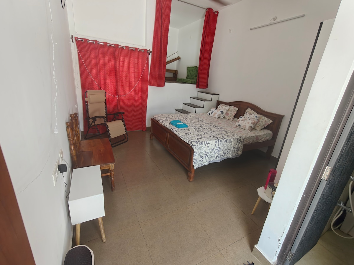 Relájate con toda la familia en este tranquilo lugar para hospedarse. Excelente ubicación para esta encantadora casa, que tiene 1 dormitorio (por lo tanto, es una habitación 2BHK con llave durante tu estancia) y 2 baños y está totalmente amueblada. Cocina totalmente equipada, amplia sala de estar, balcón, aire acondicionado en todas partes, TV y nevera. Estacionamiento privado disponible junto a la estructura. Restaurantes, cafés y atracciones turísticas están cerca a poca distancia a pie.