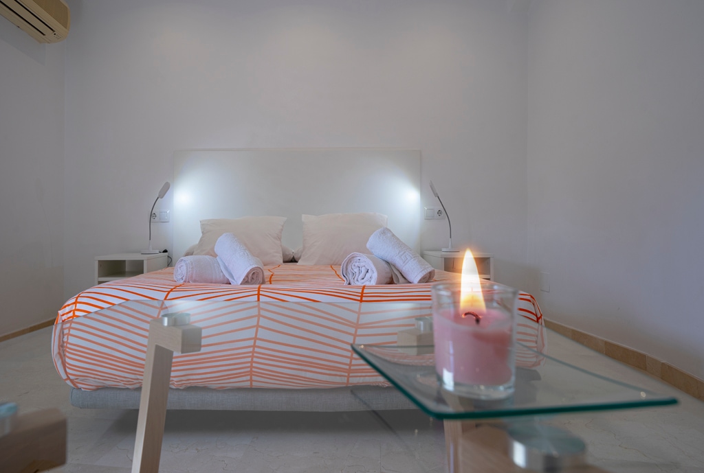 60sqm top floor apartment perfect for a romantic getaway, featuring multiple design elements and a large bedroom with a XL bed (150x200 cm) and a writing table. Completely renovated 19th century building with an unbeatable location in the heart of Old Town, less than 15 minutes walking from the beach and the city’s main attractions, and 5 minutes from paid parking. Enjoy bustling tapas bars by day & tranquil streets at night. The apartment is fully equipped, including wifi and climate control.