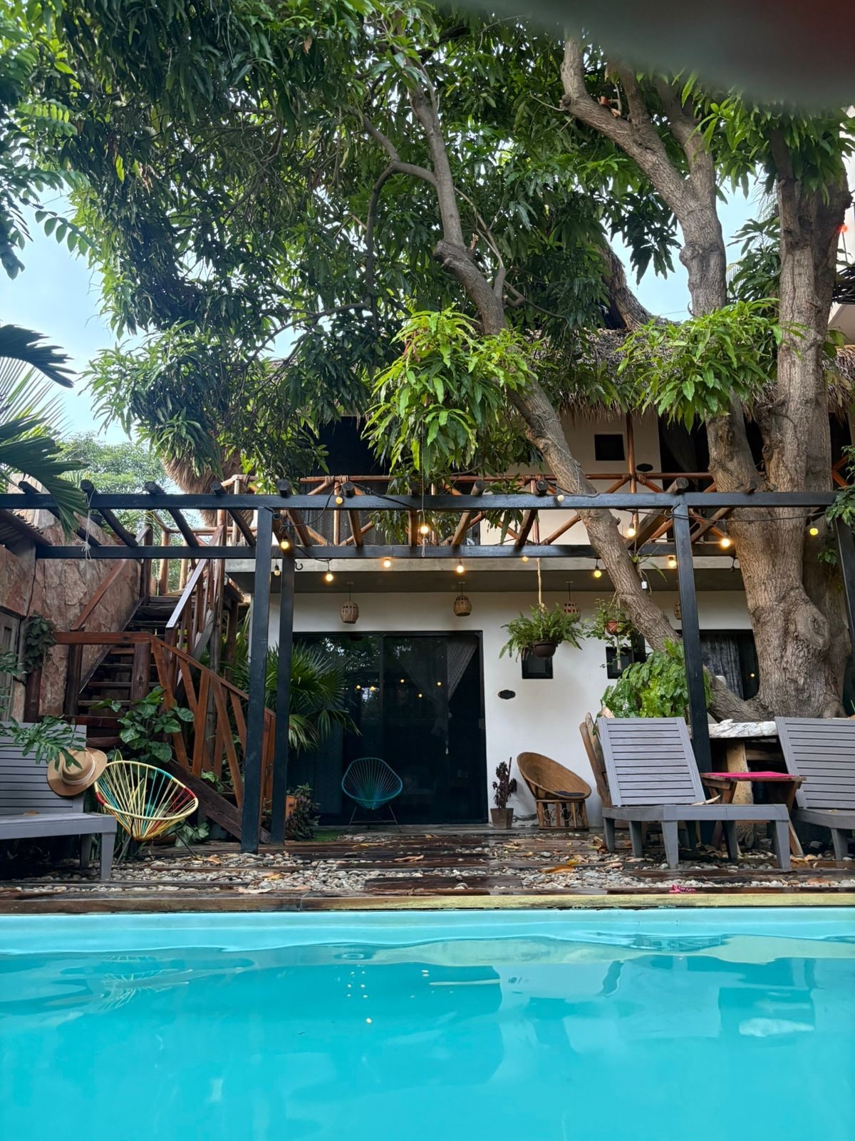 Esta suite junto a la piscina cuenta con una cama tamaño queen y baño privado. Tiene acceso compartido a 2 cocinas totalmente equipadas, una ubicada junto a la piscina y la otra en el tercer piso del hotel. Proporcionamos lo básico: agua potable, jabón de manos, papel higiénico, toallas de baño frescas y toallas de playa. Extras: plancha, nevera de playa, sombrilla y mucho más. Aire acondicionado disponible por un cargo adicional. Internet Starlink. ¡Mira mi código QR para acceder a nuestra guía! Encontrarás mucha información sobre Puerto Escondido y nuestra zona.