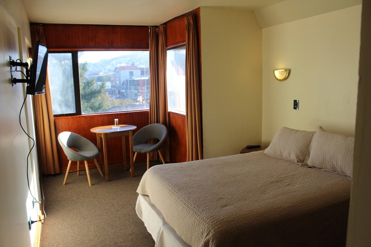 Disfruta de una estadía en Puerto Montt en uno de los hoteles más centrales y económicos de la ciudad. La reserva incluye una habitación del hotel con la posibilidad de agregar desayuno por un valor de 5.000/persona a cancelar en el mismo Hotel. Estamos ubicados a pasos de los principales centros comerciales de la ciudad, de la Plaza de Armas, y diversos restaurantes. La estadía incluye la habitación con calefacción, smart tv y baño privado dentro de la misma habitación. ¡Te esperamos!
