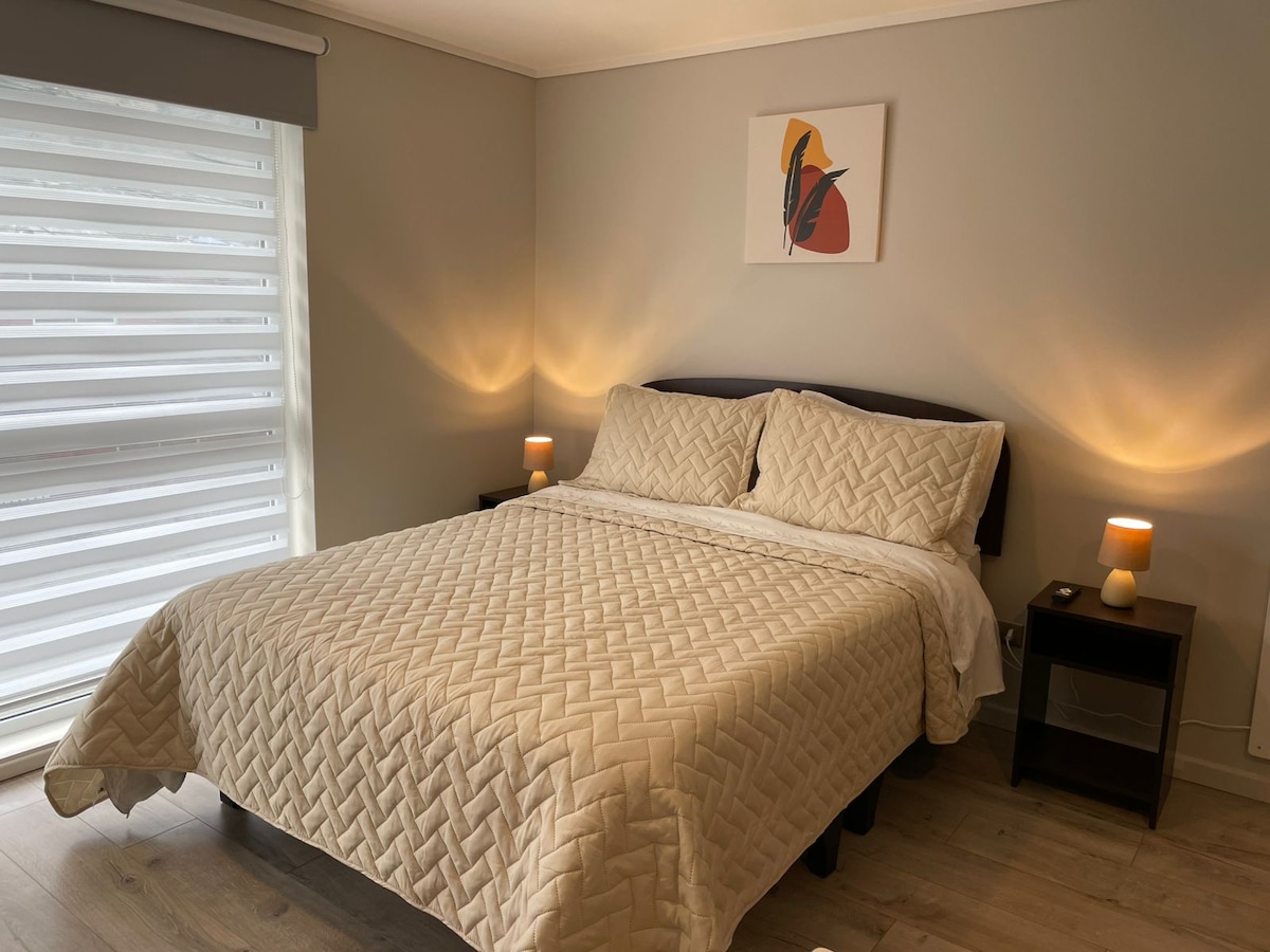 Disfruta de una estadía cómoda y conveniente en este moderno apartamento tipo studio, completamente nuevo y ubicado en una zona central de Puerto Montt. Ideal para parejas, viajeros solitarios o quienes vienen por trabajo. Contamos con: • Cama matrimonial • Cocina completamente equipada • Baño privado • Lavandería en el edificio • Estacionamiento gratuito en el lugar Ubicación privilegiada: A pasos de supermercados, farmacias y locomoción, y a pocos minutos del centro de Puerto Montt.