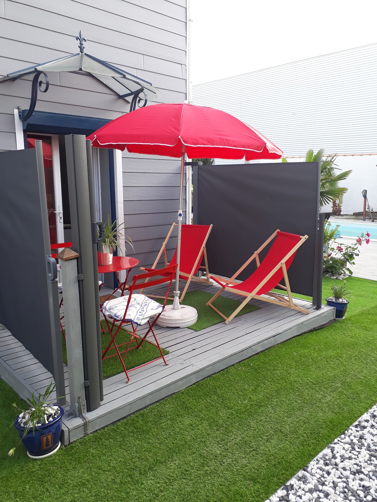Petit logement indépendant, idéal et surtout fonctionnel pour un court séjour uniquement à deux. Il fait parti d’une propriété réunissant 3 autres logements dont le notre, dans un environnement calme et familial. Les espaces verts, la piscine et le jacuzzi (extérieur) sont partagés entre les différents logements. Le jacuzzi est accessible toute l’année uniquement sur réservation et selon plusieurs conditions. (Lire descriptif de l’annonce)