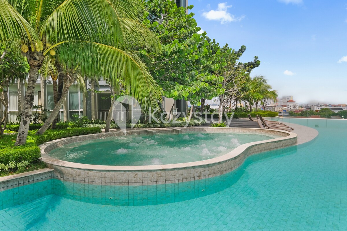 Administrado profesionalmente por Kozystay Un santuario de elegancia en el centro de Yakarta, este 1BR premium combina estilo moderno con comodidad relajante. Relájate junto a la piscina o relájate en el sereno espacio habitable. Un refinado equilibrio de privacidad, comodidad y sofisticación te espera en tu estancia. DISPONIBLE PARA LOS HUÉSPEDES: + Llegada digital + Limpieza profesional (desinfectante) + Servicios de calidad del hotel y sábanas frescas + Wifi de alta velocidad y TV por cable gratuitos + Acceso gratuito a Netflix