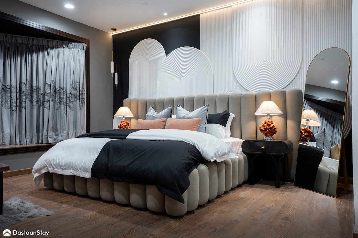 Disfruta de Stone Loft, un estudio de lujo con temática de piedra distintivo en el corazón de Gulberg, Lahore. A pocos pasos de MM Alam Road, este moderno refugio ofrece una lujosa cama tamaño king, televisor inteligente con Netflix, conexión Wi-Fi rápida, energía las 24 horas, los 7 días de la semana, estacionamiento seguro y acceso a la piscina en la azotea. Diseñado para la elegancia y el confort, Stone Loft es donde el diseño refinado se encuentra con la vida urbana sin esfuerzo.