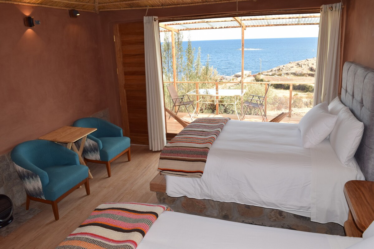 Bienvenidos a todos los viajeros del mundo a Isla Amantani en el lago Titicaca Perú! Nuestra habitación cuenta con una cama King, baño privado, agua caliente así como también vistas al lago y la montaña desde la habitación y de la terraza. Los visitantes pueden llegar principalmente en bote desde la ciudad de Puno y desde el puerto Chifron - Capachica. Su reserva incluye también el desayuno el cual puede tomar en el restaurant o en su habitación.