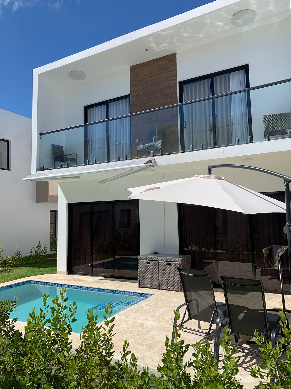 ¡Te damos la bienvenida a Punta Cana! Relájate en nuestra moderna villa de 3 dormitorios dentro de una comunidad segura con doble puerta. Disfruta de tu piscina privada, habitaciones acogedoras y todas las comodidades de casa. A solo 5 minutos de White Sands Beach y golf, con restaurantes y vida nocturna cerca. Ya sea que estés explorando la zona o simplemente relajándote junto a la piscina, esta villa es el lugar perfecto para tu escapada.