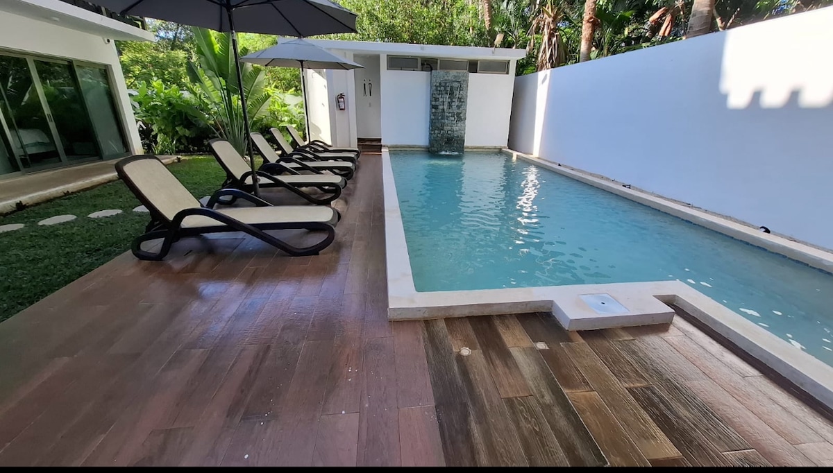 GA Villa is an excepcional villa located in one of the most beautiful private beach communities iwith 24 hour gated security in the Mayan Rivera Coast, Playa Paraiso. The villa is just a two minute walk to the private quiet beach. GA Villa is fully furnished and equipped with all the needs to host a large family or groups. The Villa has an outdoor pool, terrace with barbecue, hammock and lushes garden. Your Vacation Villa awaits!!