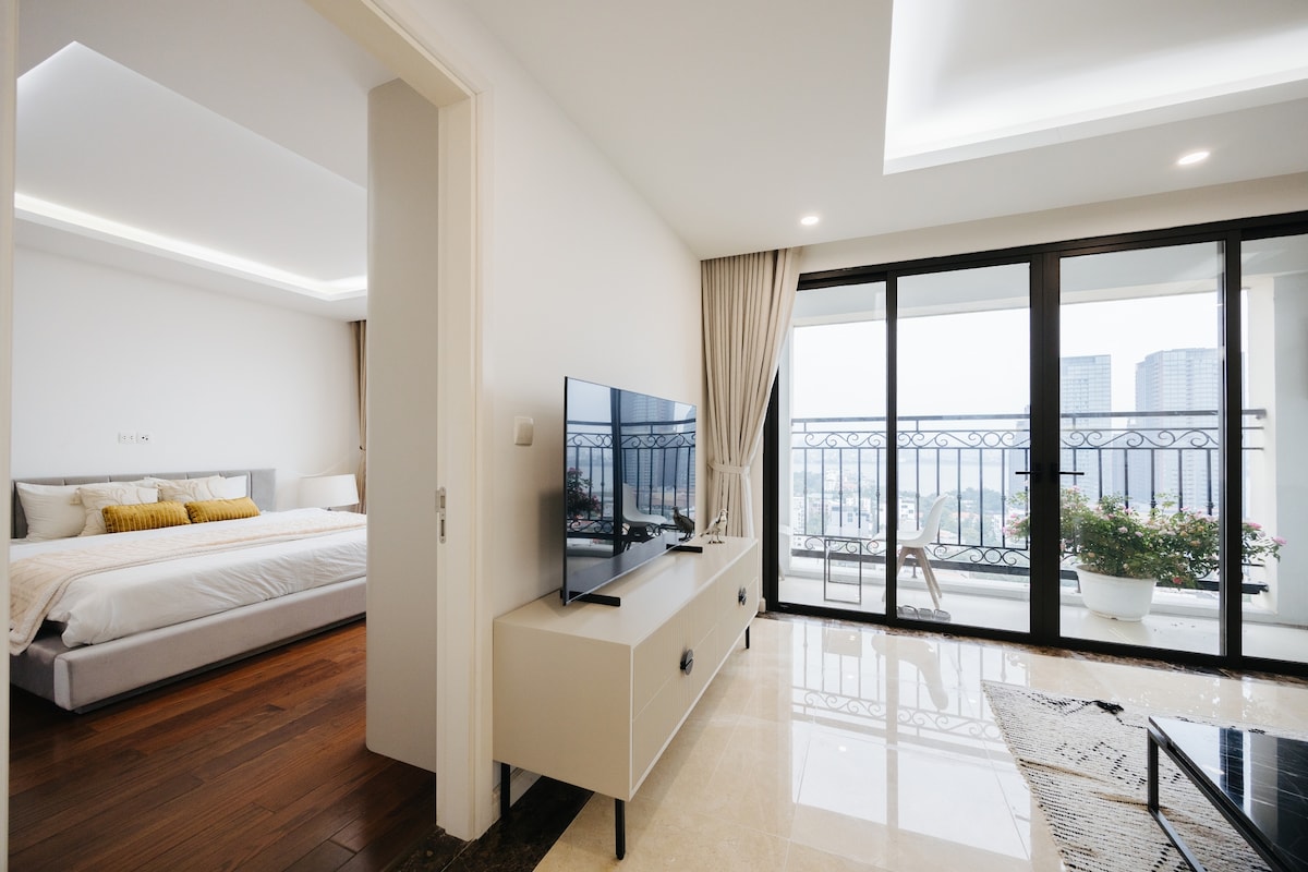 Disfruta de la serenidad invernal en Chewly Lake View Apartment en D' Le Roi Soleil, una joya escondida en Hanói donde el arte refinado se encuentra con la tranquilidad. Ubicada junto al tranquilo West Lake y a pocos minutos del centro comercial Lotte, esta elegante morada revela amaneceres brumosos, una vista al balcón frío, ropa de cama cómoda, una cocina completa, televisor inteligente y conexión Wi-Fi ultrarrápida. Rodeado de encantadoras cafeterías y joyas culturales, es perfecto para viajeros solos, parejas... ¡La casa de familia ha sido decorada con un ambiente Tet, así que asegúrate de visitarla!