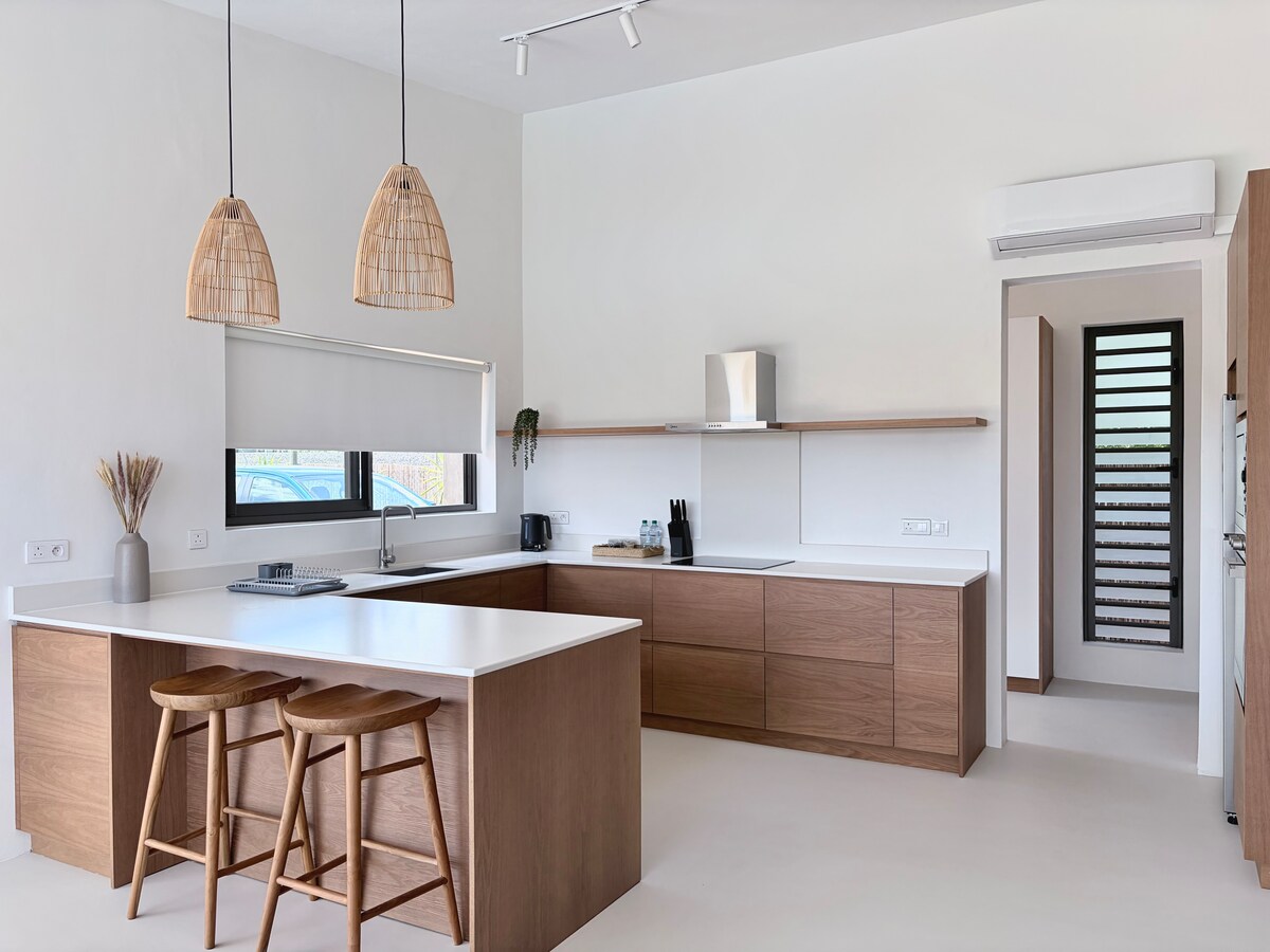 Una auténtica casa de vacaciones que se encuentra justo en una hermosa playa con una gran laguna. Diseñado por uno de los arquitectos más famosos de la isla, es un lugar donde la vida es igual a la serenidad y la felicidad. Despiértate con los sonidos de los pájaros, toma un café bajo los cocoteros, sumérgete en la impresionante laguna y recuéstate en la hamaca. La casa es atendida a diario por nuestras dos encantadoras señoras de limpieza que se enorgullecen de preparar deliciosos platos locales. Perfecto para parejas, ya que es para familias.