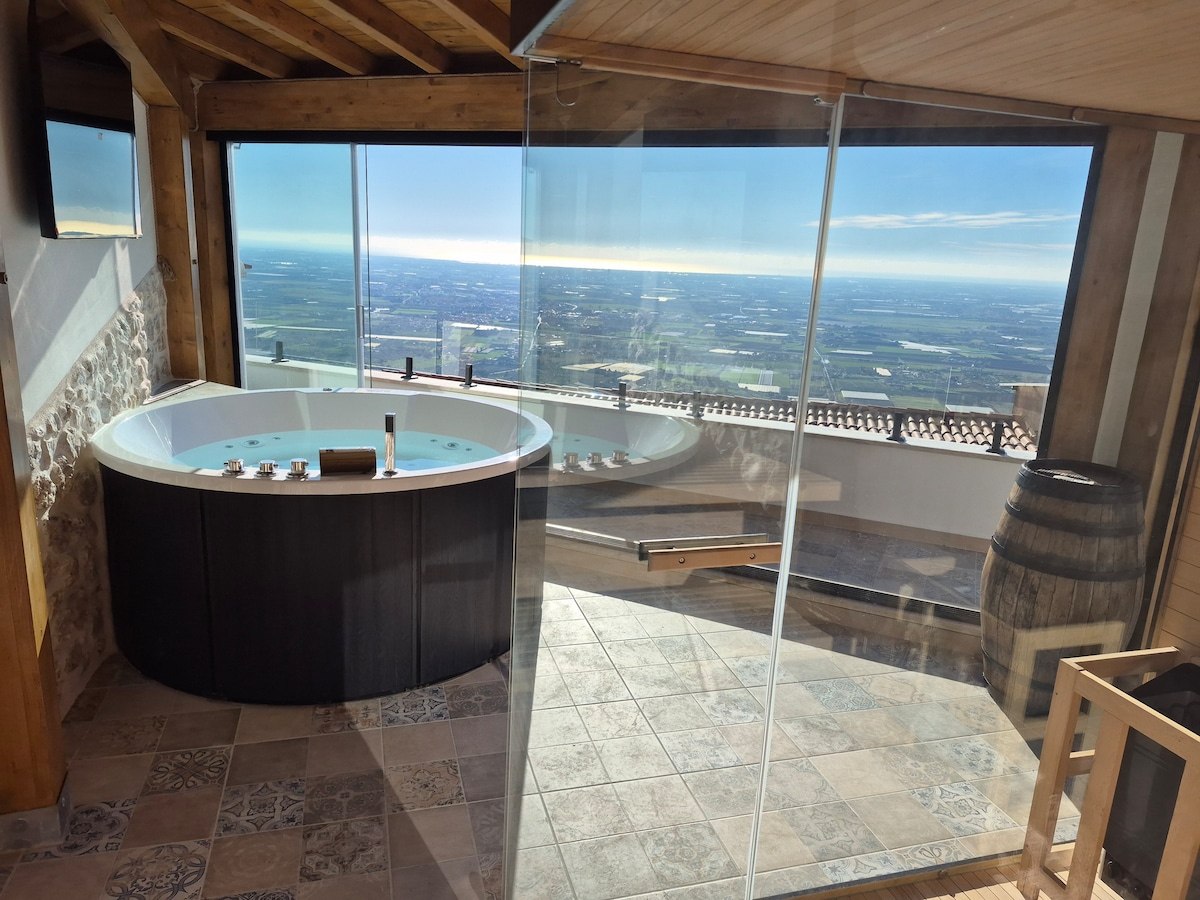 Relájate en este espacio elegante y relajante. Siguiendo los pasos de la primera, nació la segunda Suite de LA NUIT D'AMÉLIE... una suite de 120 metros cuadrados totalmente privada con: Sala de estar: compuesta por una cocina completa de planta abierta con una sala de estar con TV LED de 65 pulgadas, chimenea de bioetanol, aire acondicionado y un baño. Zona de dormitorio: cama doble, TV de 90 pulgadas, aire acondicionado, baño principal con ducha abierta y balcón. Zona de bienestar con sauna finlandesa, jacuzzi y una vista impresionante a la llanura Pontina.