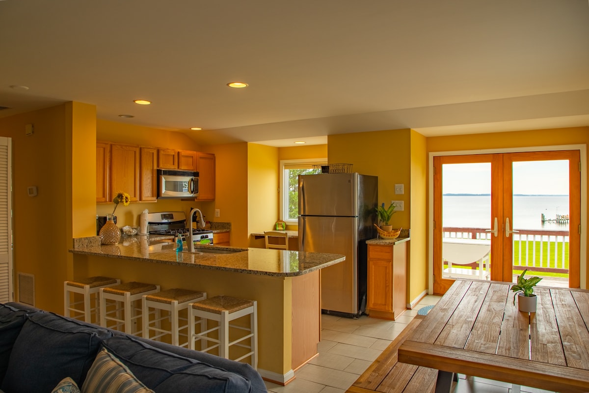 Disfruta de este apartamento tipo estudio privado recién reformado y frente al mar con una hermosa vista a la bahía de Chesapeake. Es una escapada perfecta para cualquier persona que busque descanso y relajación en medio de una ubicación tranquila e impresionante. Disfruta nadando en la piscina, pescando en el punto, sentado alrededor de una chimenea de gas por la noche, visitando cualquiera de las playas de arena locales o simplemente contemplando impresionantes puestas de sol desde un patio privado. Amplio aparcamiento, wifi, TV, acceso a rampa para barcos. Se admite una mascota.