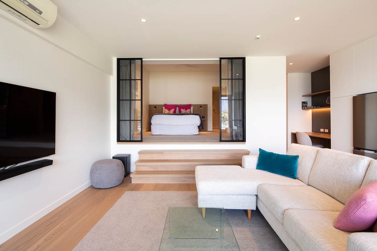 Un entorno increíble, con vistas incomparables del lago Whakatipu y The Remarkables, Crystal Waters es una propiedad completamente nueva convenientemente ubicada en el suburbio de Queenstown, pero lejos de todo. Nuestras suites cuentan con interiores rústicos de lujo, estufas de leña, cocinas completas y ventanales del suelo al techo para disfrutar de vistas panorámicas ininterrumpidas desde todas las habitaciones. Ya sea una aventura en la montaña o una escapada romántica, nuestras suites son el lugar perfecto para crear recuerdos preciados.