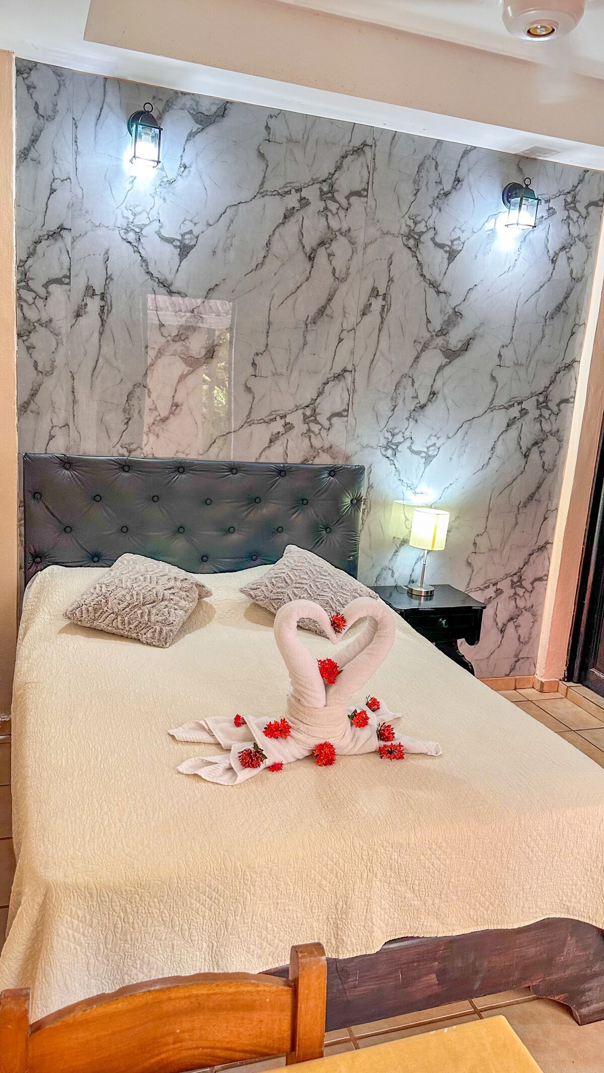 We are located in the heard of Manuel Antonio, our facilities provide beach access with chairs to enjoy the ocean and relaxation of the beach vibes. Our room offer enough space for 4 people, is ideal for families. 2 Queen beds / TV / Mini fridge / Microwave / Small balcony with a pretty jungle view where sometimes you can see monkeys / toucans / macaws and other. Breakfast is included.