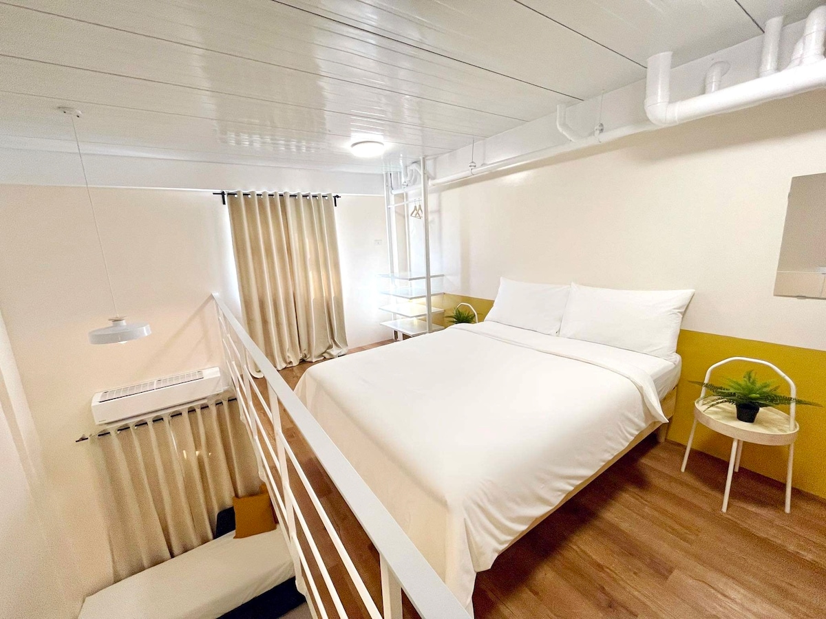 Relájate en este acogedor y tranquilo loft pequeño, ubicado en un barrio seguro de Mandaluyong con seguridad en el edificio las 24 horas, los 7 días de la semana. A solo 9 km (20-40 minutos dependiendo del tráfico) del aeropuerto NAIA y cerca de SM Megamall, Shangri-La y Powerplant Mall. Este lugar es perfecto para viajeros solitarios, parejas, nómadas digitales y viajeros que buscan comodidad, conveniencia y una estancia única de estilo loft. 5–10 minutos a la estación EDSA Shaw / MRT A poca distancia a pie de cafeterías, comida rápida, tiendas y supermercados.