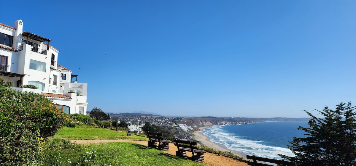 Zona muy turística, playas, surf, ciclismo, caminatas, cabalgatas, vida nocturna, restaurantes. Ubicación central, con acceso en ascensor a la playa Abanico, restaurantes, supermercado, iglesia y servicios. El departamento es nuevo, en primera fila, con una vista espectacular al mar. Está en primer piso y tiene terraza y jardín. 2 dormitorios en suite. Es ideal para parejas, aventureros y familias. Gran accesibilidad por transporte público, a 2 horas del aeropuerto de Santiago.