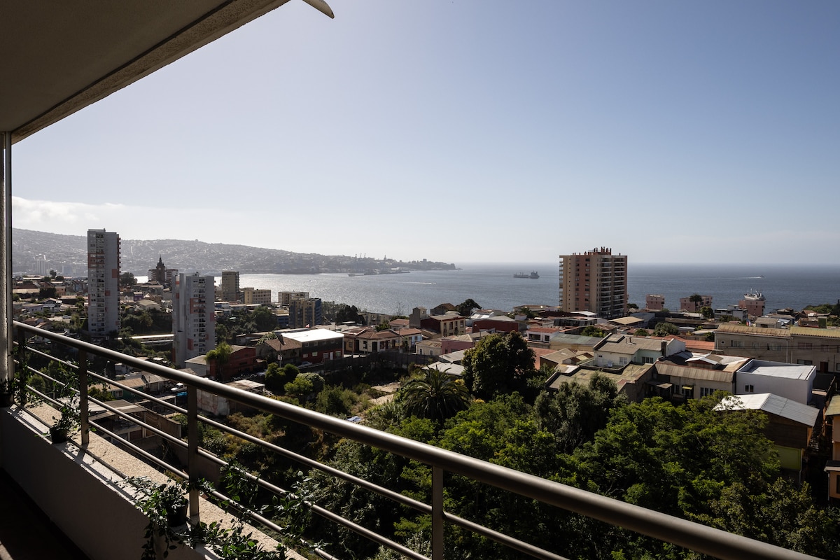 Departamento amplio, con Maravillosa vista a la bahía, en el centro de Valparaíso, excelente conectividad. Habitación matrimonial, baño suit, terraza amplia, living, comedor, cocina equipada. Cuenta con estacionamiento ( Preguntar por disponibilidad) Piscina en el quinto piso con vista a la bahía.