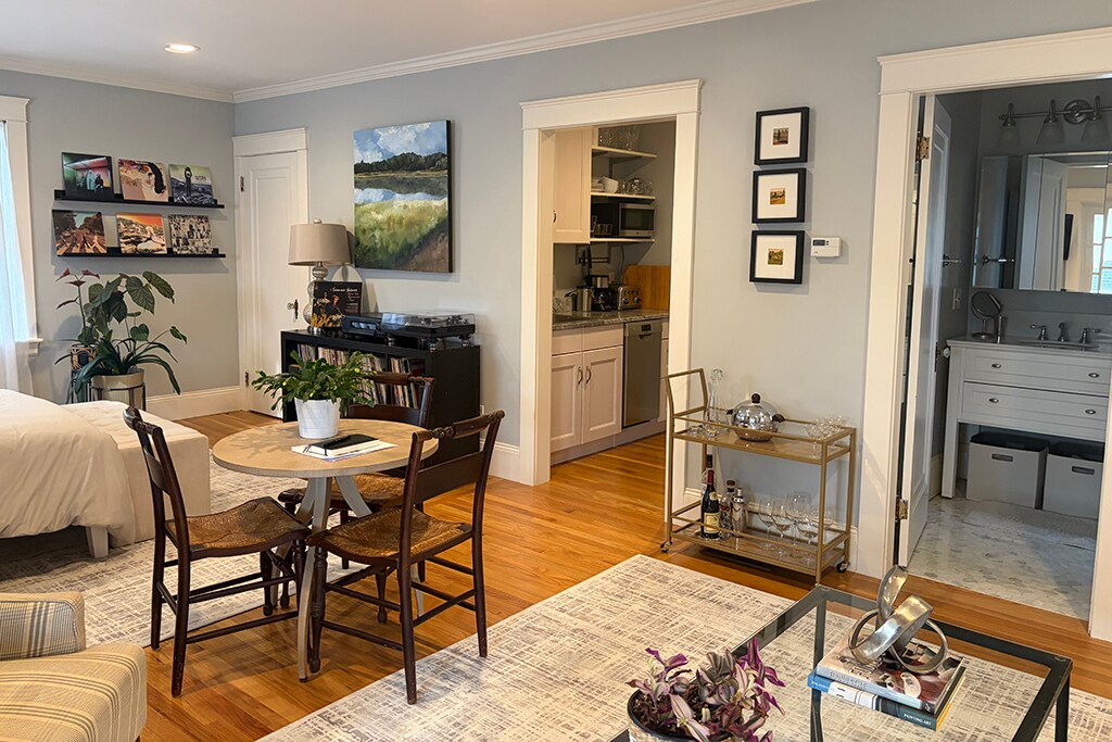 Suite de invitados tipo estudio recientemente renovada en nuestra casa histórica de 1600 en Silver Spring Lake y Tower Hill Road (Rte 1S). La suite está unida a nuestra casa, pero está 100 % separada con entrada privada a la terraza (1 piso arriba), entrada para vehículos y acceso al lago. Disfruta de los detalles cariñosos para los huéspedes, como la chimenea y una zona de café con servicio completo. ¡Gooseneck Vineyards está al otro lado de la carretera! Cerca de URI y Salve Regina… A poca distancia en coche de Jamestown, Narragansett y Newport. ¡Tus aventuras en el lago/playa esperan tu llegada!