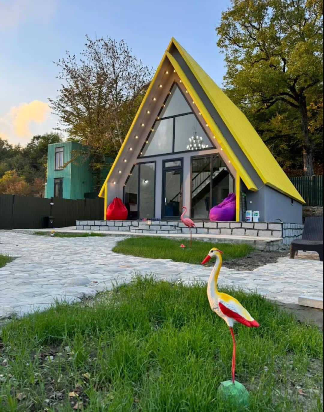 Moderna cabaña con estructura en A en Quba, vista al bosque, privada