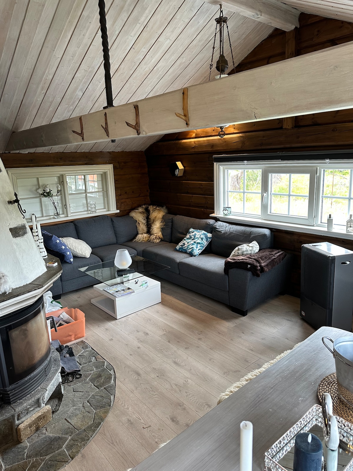 Bienvenido a una casa de madera real, que se construye después de varios escritorios de construcción de cientos de años en Noruega. La casa tiene instalaciones modernas en un apartamento. Tendrás ropa de cama encantadora, muchas almohadas y muchas toallas suaves. Las paredes son troncos y todos los pisos son de pino de madera maciza con cables de calefacción. Puedes estacionar varios autos de forma gratuita en la propiedad y en el garaje y podrás disfrutar de hermosas vistas de la gran naturaleza. Bergen está a solo 25 minutos. Hay 5 camas y un sofá cama en la casa. ¡Una experiencia!
