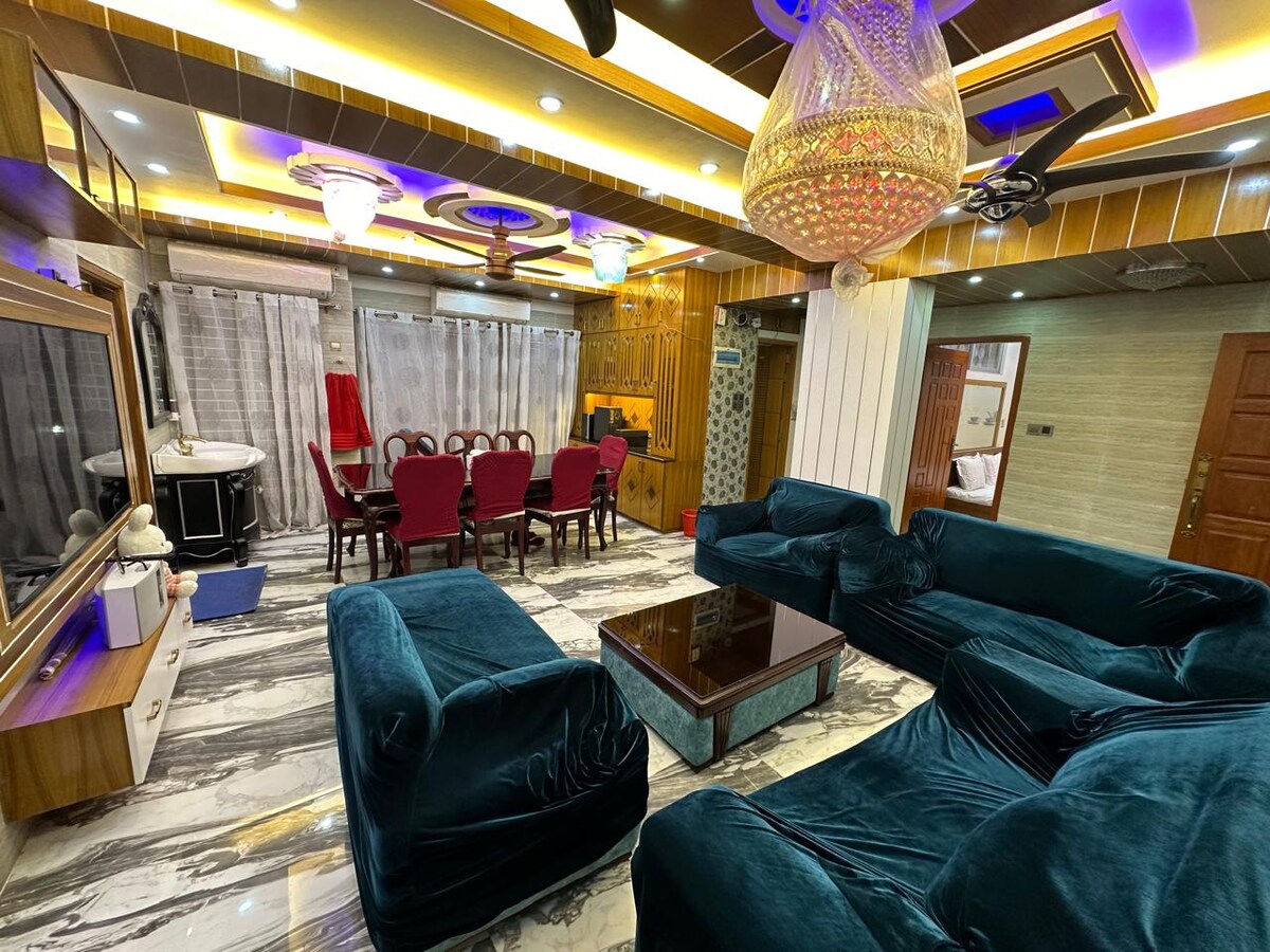 ¡Alójate en el corazón de Rajshahi, junto a la oficina de City Corporation! Camina hasta el nuevo mercado, la estación de tren y la terminal de autobuses. Rodeado de los mejores restaurantes y tiendas, además de una importante tienda de comestibles en el mismo edificio. Edificio seguro con 3 dormitorios, 3 baños, cocina completa, sala de estar y comedor, wifi, TV UHD de 65pulgadas, aire acondicionado en 2 dormitorios, comedor y salas de estar. 1 lugar de estacionamiento, 2 ascensores, todos los lados abiertos para el aire fresco. ¡Perfecto para una estancia cómoda y segura!