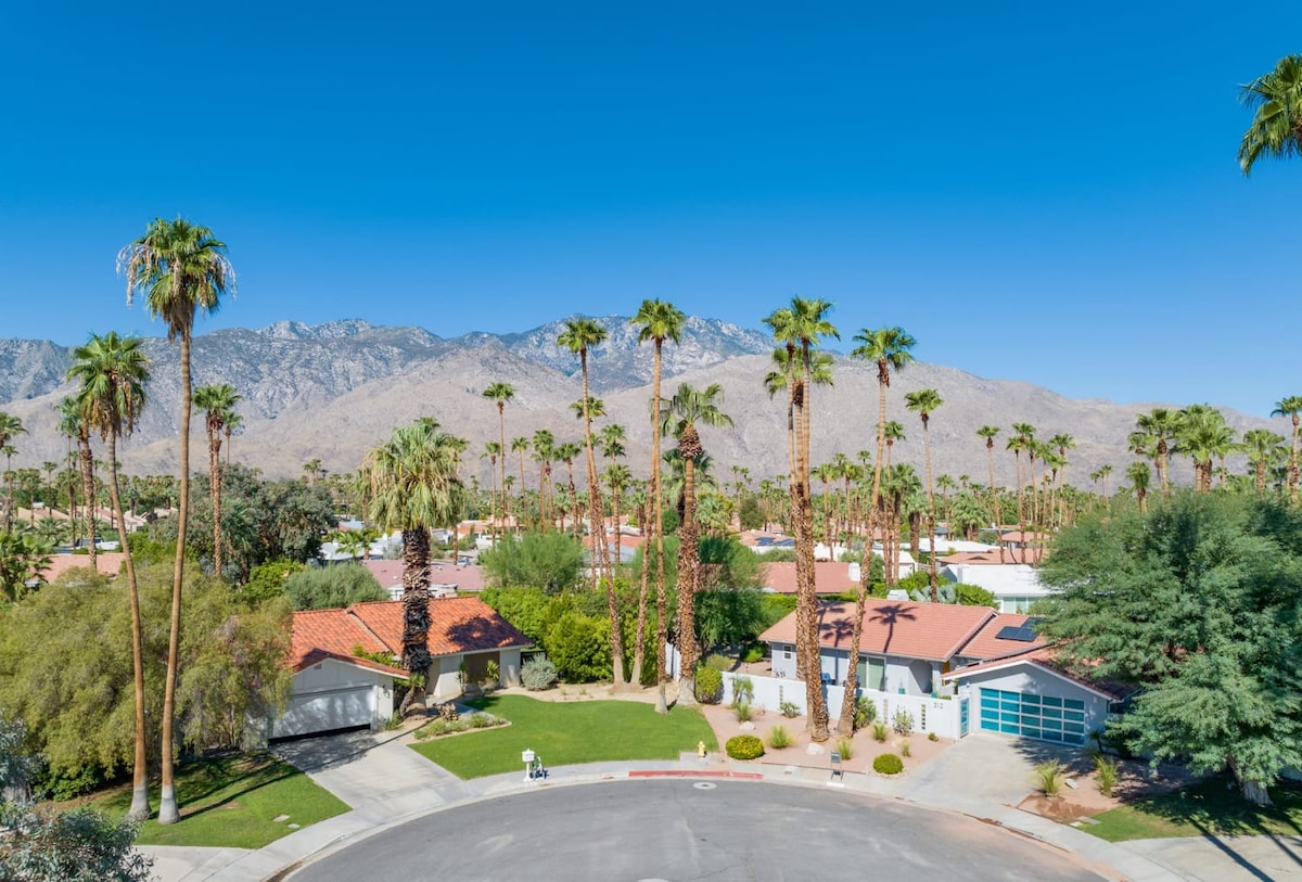 ¡Casa recién remodelada, piscina y jardinería! Moderna casa de mediados de siglo de estilo Alexander con casita adicional en el encantador y codiciado barrio de Twin Palms. Las palmeras maduras se extienden hasta donde alcanza la vista, y el lado este de la propiedad está bendecido con vistas espectaculares de las montañas de San Jacinto. El toldo exterior da sombra a la piscina de agua salada a partir del mediodía, mientras que los adoradores del sol pueden disfrutar de los rayos extendidos en las tumbonas orientadas al oeste. En el interior, la decoración es una mezcla de la elegancia de Palm Springs de los años 50 y Mad Men.