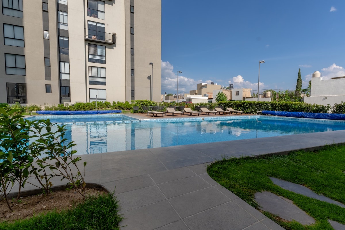 Departamento totalmente nuevo con alberca y gym cerca de Arena Guadalajara. Disfruta de una estancia cómoda y segura en este lugar acogedor perfecto para familias, parejas o viajeros que buscan comodidad y buena ubicación. Ubicado a solo 5 minutos de Arena Guadalajara y a 15 minutos del centro histórico, tendrás fácil acceso a eventos, conciertos, centros comerciales, y los principales atractivos turísticos de la ciudad. Tu próximo destino en Guadalajara te espera!