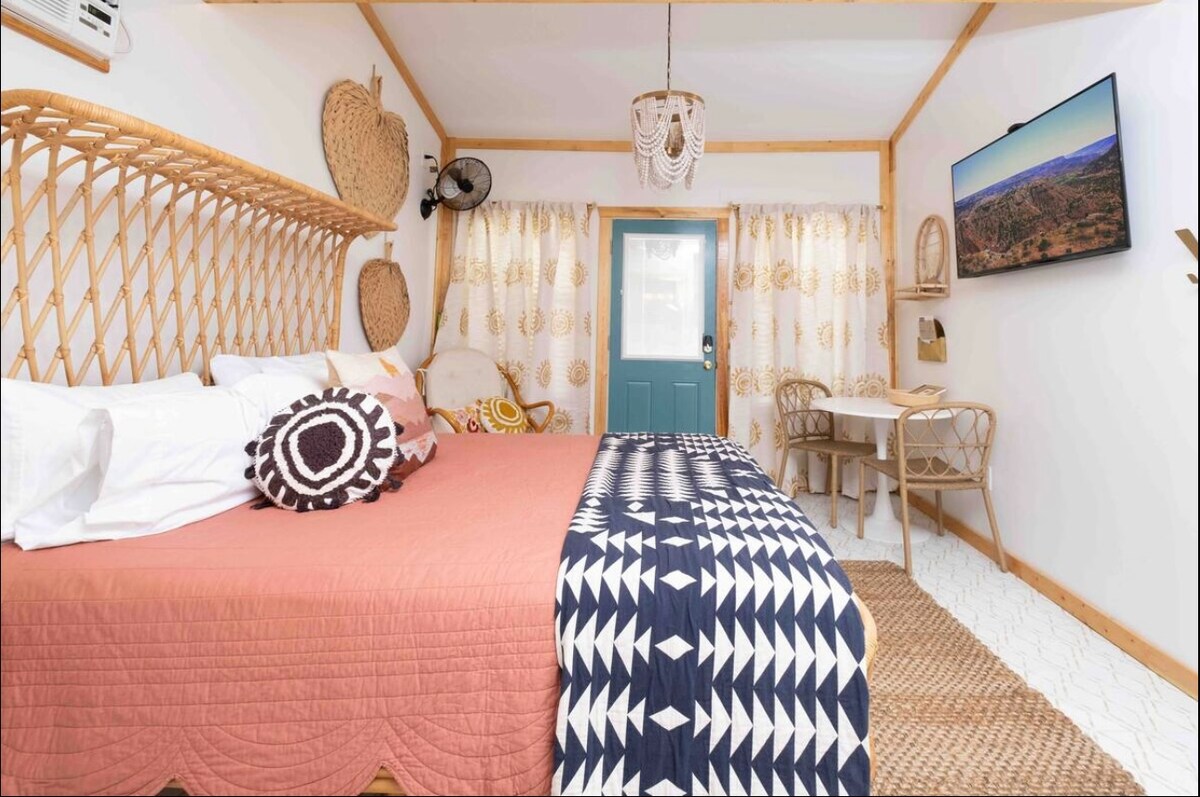 An incredible and intimate space with vaulted ceilings, a curated garden, and hand-painted floors. Not a single detail has been overlooked in the creation of this beautiful guest studio apartment. Enjoy evenings on the patio, surrounded by the warm glow of bistro lighting or whip up a delightful breakfast in the fully stocked kitchen for a comforting, slow morning. This home is the perfect place for deep relaxation, thoughtful meditation, or just a simple escape from busy life.