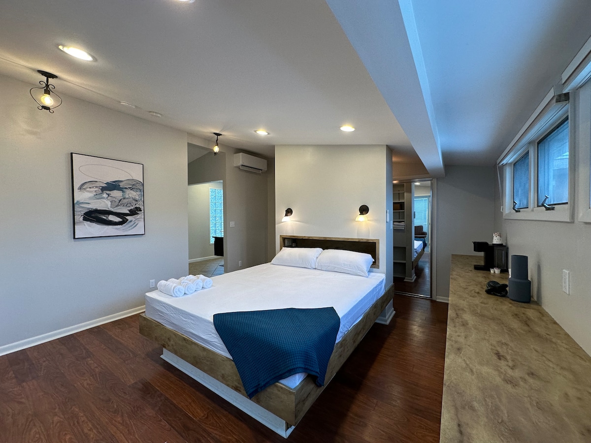 Escápate a esta serena suite con entrada independiente, una extensión de la casa principal, en la zona más segura y tranquila de Baltimore. Ideal para parejas, ofrece un jacuzzi privado, una cama tamaño king californiana, un gran televisor moderno y un sistema de climatización dedicado para mayor comodidad. La espaciosa sala de estar y la lujosa ducha crean un retiro pacífico. Camina a tiendas y parques cercanos para mayor comodidad. Hay un cargador Tesla disponible bajo pedido, lo que garantiza la comodidad de los propietarios de vehículos eléctricos. Perfecto para una escapada relajante o visita a la ciudad.