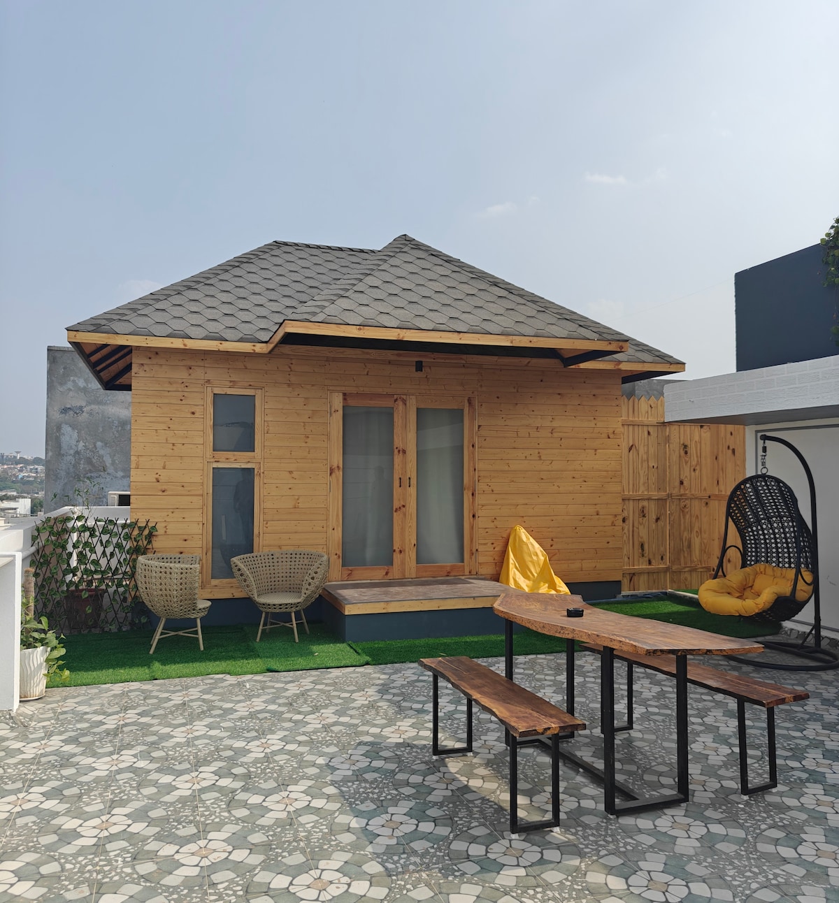The whole group will be comfortable in this spacious and unique space.A Luxuries wooden cootage givingvibe if hill station in heart of hyderbad MADHAPUR, will be suitable for couples, families, small get-togethers, weekend hangouts.U can request for Barbeque table, fire place and open air projector at additional cost.More then 2 will be chargeable additional. one of its kind don't miss the experience