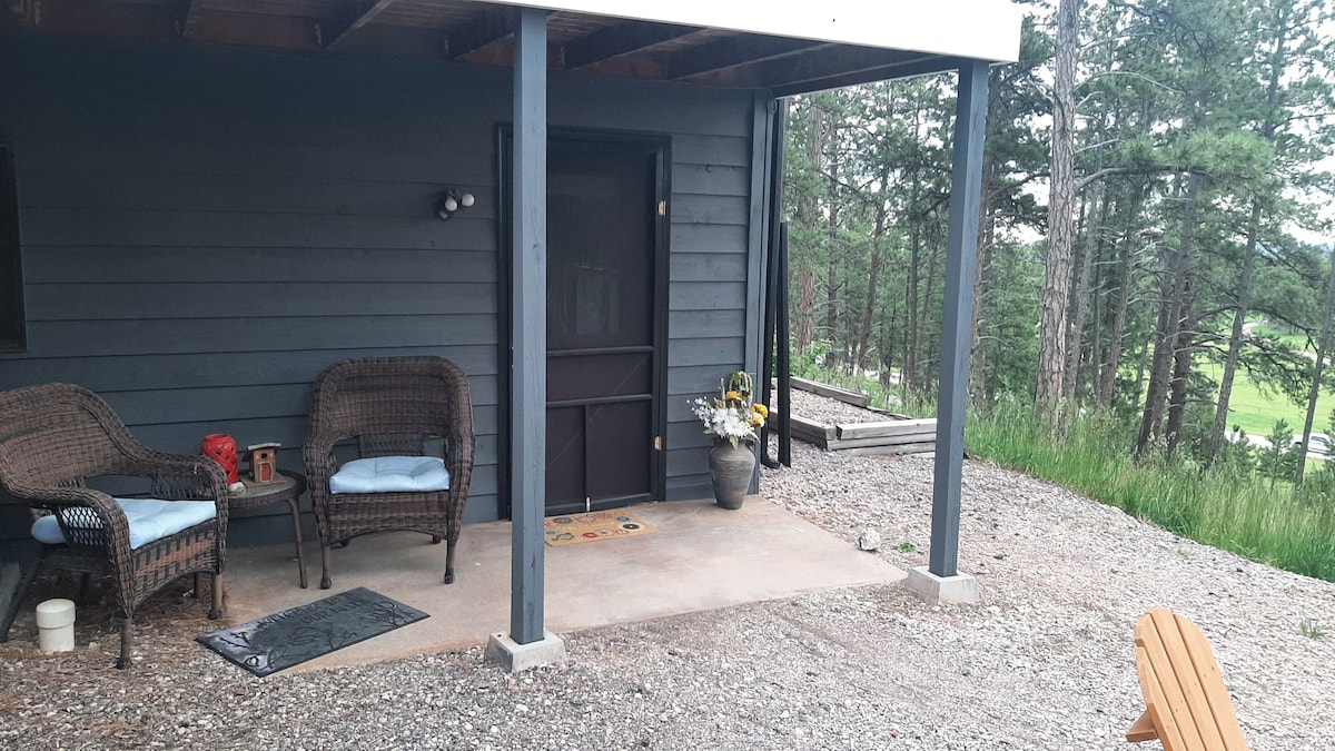 Este elegante estudio de 800 pies cuadrados tiene unas vistas preciosas a las Colinas Negras y está rodeado de bosque nacional. Está a 10 minutos en coche de Rapid City por la pintoresca carretera Rimrock. Hay increíbles caminatas y un mirador panorámico a unos pasos. Hay una entrada privada para salir al nivel inferior en un terreno de 6 acres. El estudio tiene cama tamaño king, baño completo, cocina americana con nevera grande, microondas, horno tostador, cafetera, etc. Hay estacionamiento al aire libre o estacionamiento cubierto disponible en caso de mal tiempo.
