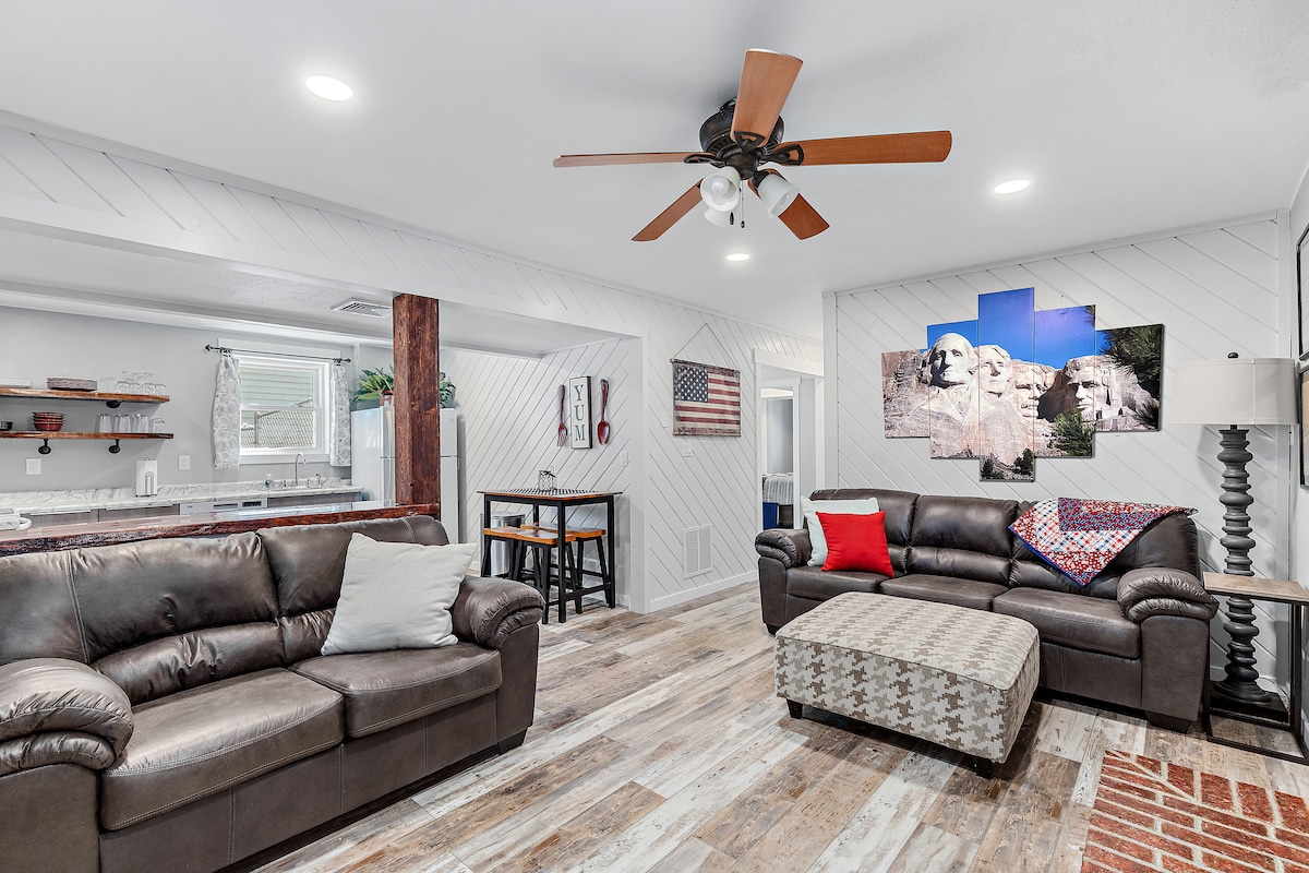 ¡Esta casa es grande, cómoda, limpia y está justo en el corazón de Rapid City! ¡Estamos a pocos minutos del centro de la ciudad y a solo 40 minutos del monte Rushmore! Nuestra casa tiene una gran cocina abierta, dos salas de estar, TV inteligente de 55 pulgadas en cada sala de estar, juego de arcade Pac-Man y mucho espacio acogedor para todos. Hemos hecho todo lo posible para asegurarnos de que se proporcione todo lo que necesites para tu estancia: ¡platos, sartenes, café, lavadora y secadora y muchas toallas! ¡Reserva ahora!