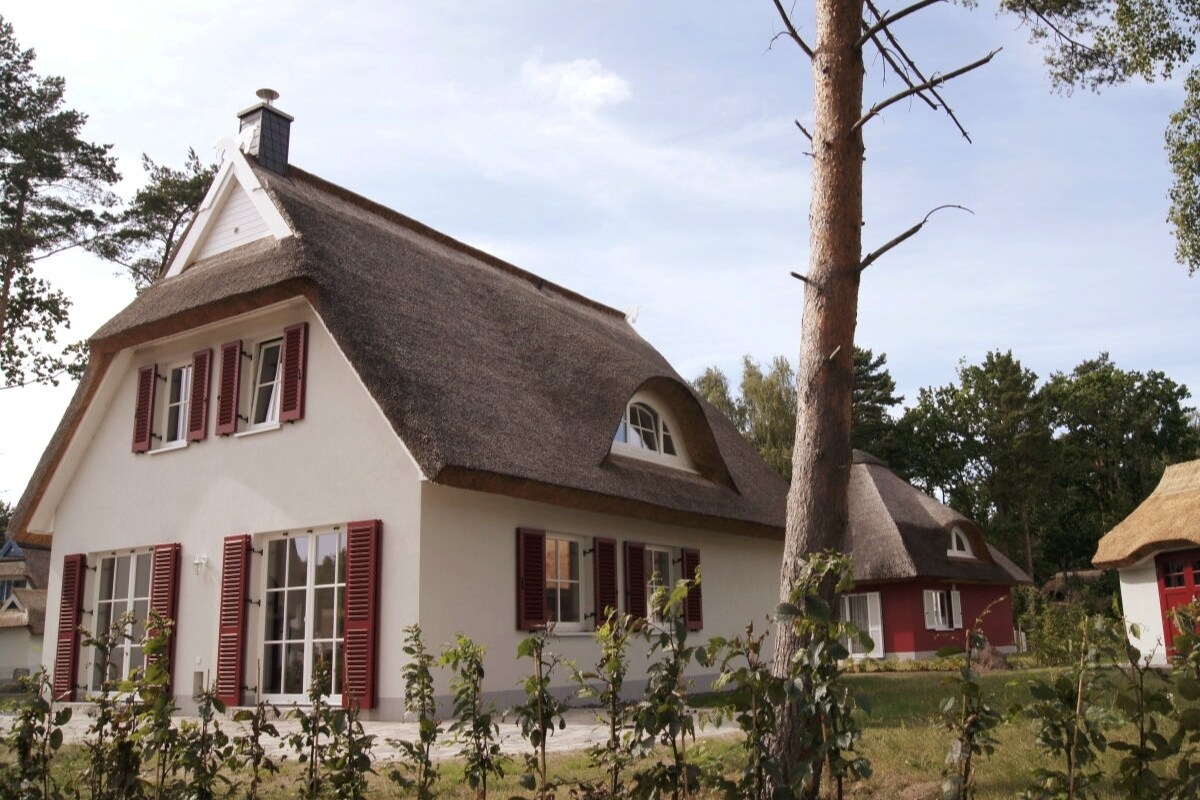 ... look out of your bed onto the water, enjoy the peace and quiet and listen to the rustle of the beech forest, experience bike tours directly on the water and enjoy nature. A beautiful, modern and rustic, low-energy half-timbered house with thatched roof, Moroccan tiles, oak floorboards and clay plaster walls awaits you. For activities there is a beautiful large garden with a forest swing, free steam sauna, outdoor shower and tub, a standup paddle, a paddle boat and 4 bicycles.
