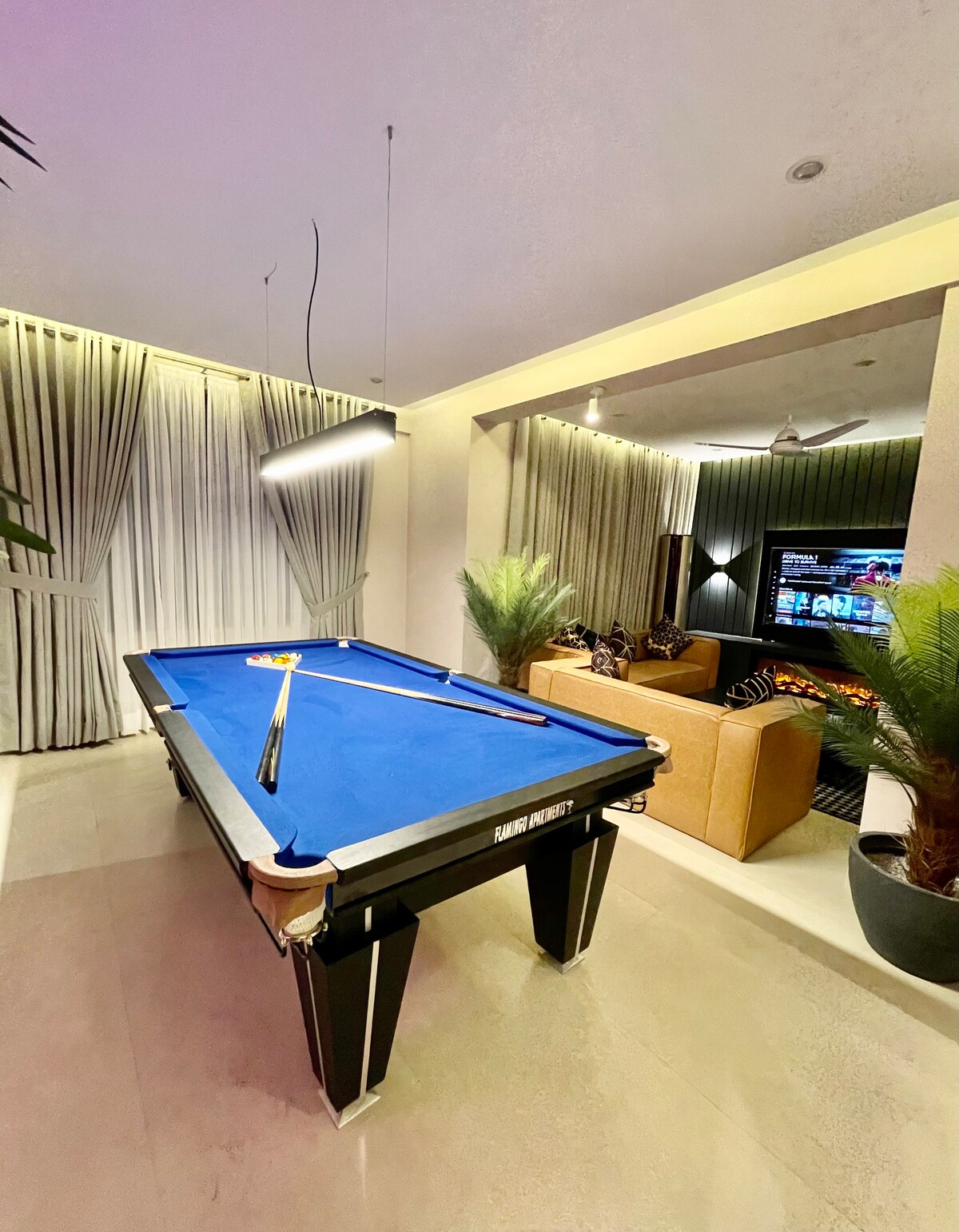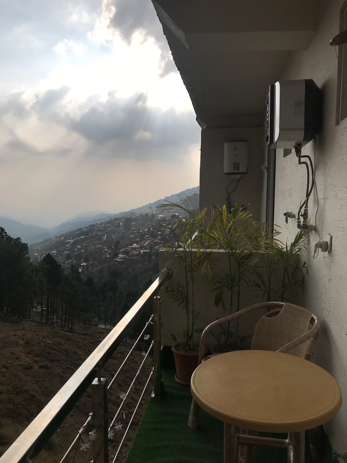 A luxurious serviced apartment with 180° picturesque stunning mountain views. It's a peaceful retreat 10 - 15 mins drive away from the busy Nathiagali bazar as you go towards Kalabagh Airforce Camp and take the forest road across the outskirts of the forest. The apartment has an additional private entertainment lounge with home cinema, snooker, table tennis and a racing sim Feel at home with staff consisting of a housekeeper and a cook. Heating, hot water, great wifi speed and solar backup.