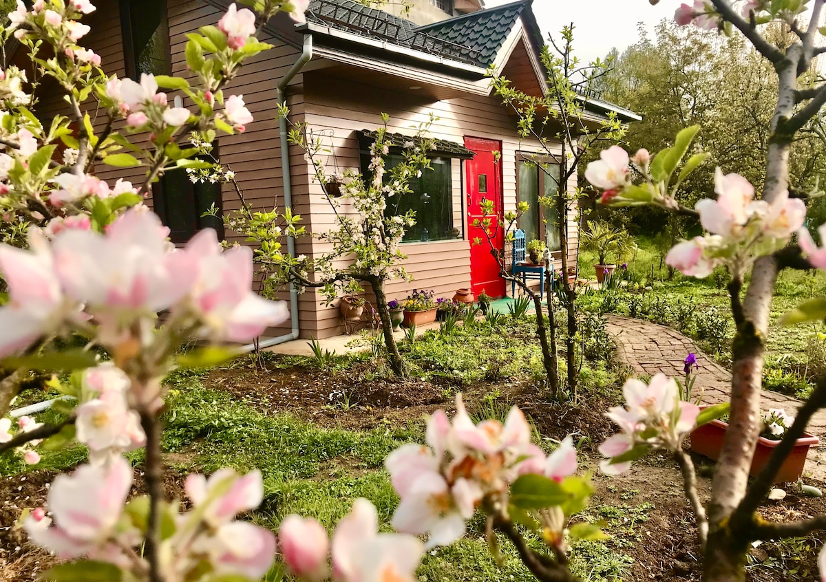 Unwind in this stunning cottage that offers urban comforts in the lap of nature. It has hot/cold AC, a cozy loft study, high speed WiFi, spacious kitchen & dining area. Outside there is a tastefully designed garden with fruit trees, pond, meditation gazebo, fire pit, pizza oven, organic produce & birds. You can commune with nature in this serene oasis that is walking distance from Dal Lake and close to Nishat & Shalimar gardens, Dachigam Forest & Hazratbal. Ask about our off-beat itineraries.
