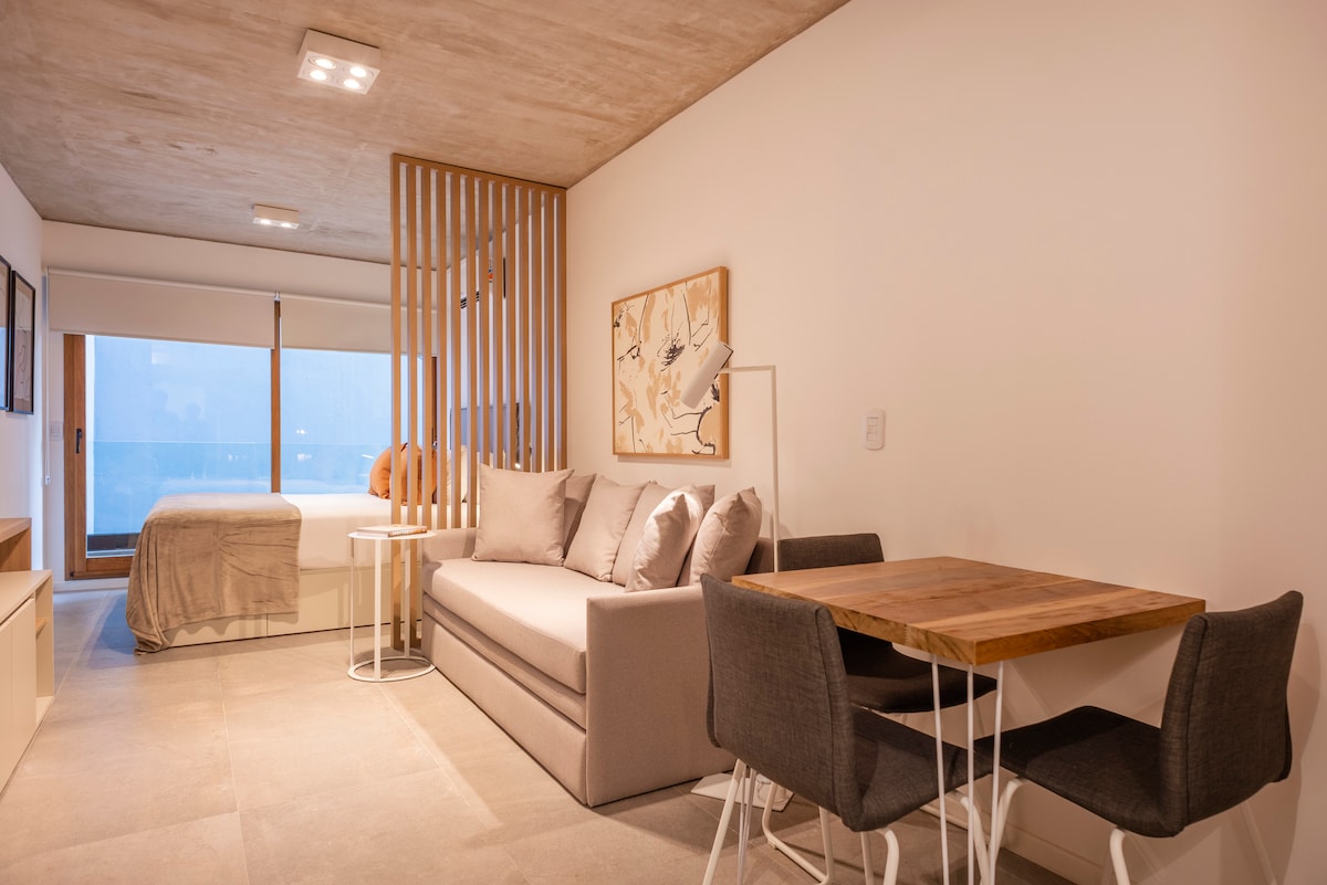 Hermoso monoambiente moderno, luminoso y equipado.