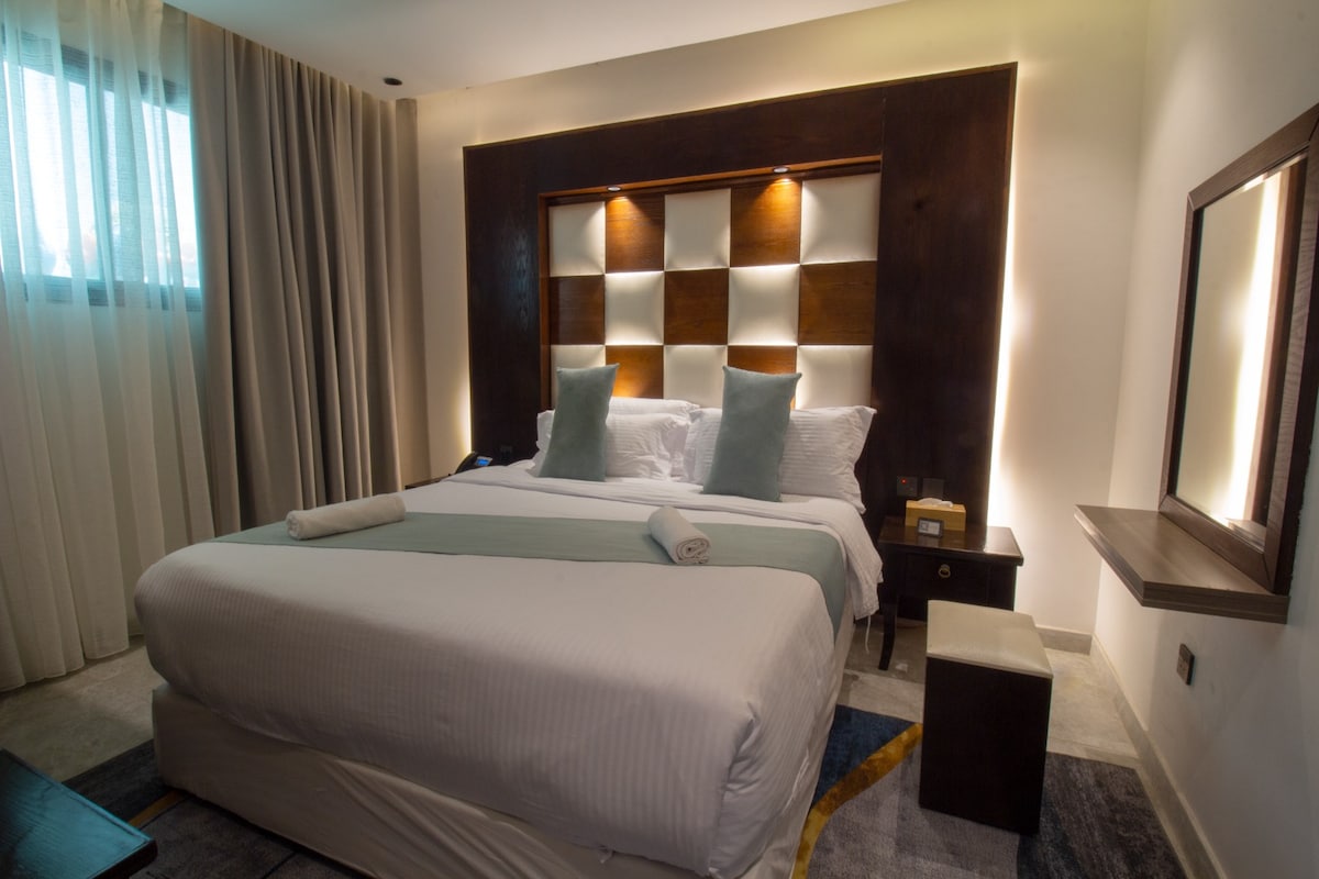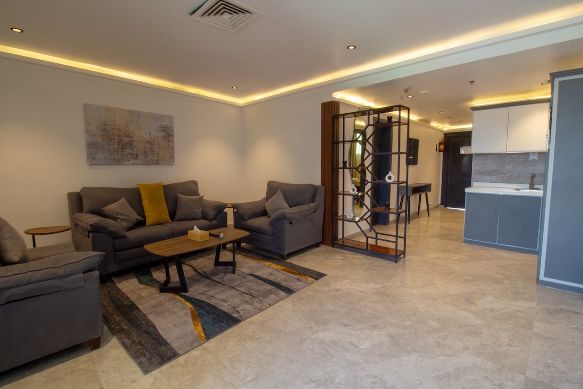� جناح بغرفة واحده وصالة وبلكونة – مثالية للازواج استمتعوا بإقامة مريحة في شقة واسعة وأنيقة تضم: غرفة نوم مجهزة بالكامل: • غرفة مزدوجة بسرير فاخر صالة جلوس راقية تفتح على وبلكونة بإطلالة جميلة، مثالية للراحة وشرب القهوة! مطبخ يشمل: • فرن • ثلاجة • أدوات أساسية للطبخ الجناح مصممة بعناية لتناسب الازواج ومحبي الخصوصية والهدوء. الموقع مميز وقريب من الخدمات الأساسية والمطاعم