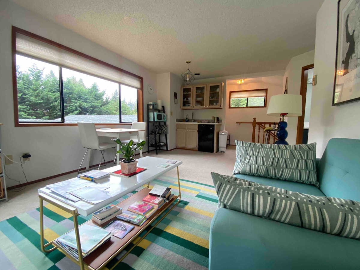 Disfruta de una acogedora suite a pocos minutos del hermoso lago Sammamish. Tanto si viajas por trabajo como por vacaciones, tendrás todo el estudio para relajarte o ser productivo. Da un paseo, corre o monta en bicicleta por el sendero cercano con acceso al lago. Fácil acceso a 520, I-90, a 10 minutos de Microsoft, bodegas de Woodinville, rutas de senderismo, a 3 minutos de tiendas de comestibles/restaurantes. A solo 30 minutos del centro de Seattle, con todo lo que ofrece la ciudad esmeralda: deportes, conciertos, pistas de esquí, ferry a las islas y mucho más. ¡Carga gratuita de vehículos eléctricos AC+!