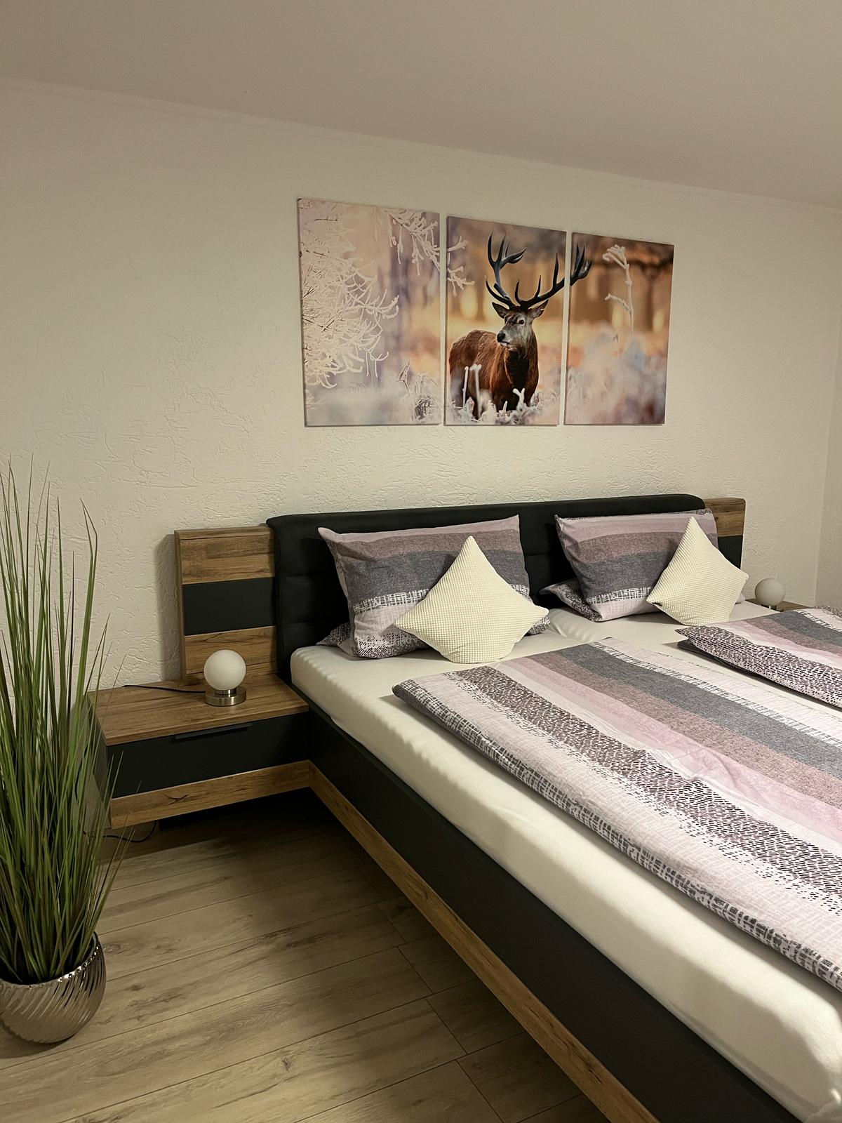 Tres apartamentos modernamente amueblados en el primer piso del edificio sobre la destilería en un lugar tranquilo te invitan a relajarte en la naturaleza. Un espacioso balcón orientado al sur ofrece una estancia tranquila al aire libre. Este anuncio describe el amplio apartamento con dos dormitorios separados para dos personas cada uno.