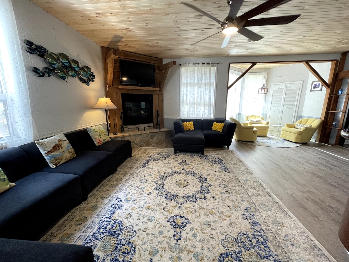 Después de relajarte en la playa (a solo 7 minutos a pie), relájate en nuestra terraza "¡observa la marea!" ¡Disfruta de lo mejor de la bahía y la playa con esta joya oculta que admite perros! ¡Imagina las noches disfrutando de la brisa de la bahía mientras rompes cangrejos en la cubierta! Relájate dentro de nuestra gran sala de concepto abierto que permite a todos estar juntos. Pesca en nuestro muelle privado o úsalo para tu propio barco o moto acuática para atracar allí. Sé testigo de puestas de sol espectaculares con nuestros kayaks. ¡Disfruta de un espacio de trabajo privado bien iluminado para trabajar virtualmente con internet de alta velocidad! ¡Las piscinas y las canchas de tenis están a unas manzanas de distancia para tu disfrute! Además, ¡una NUEVA EXPERIENCIA DE CINE AL AIRE LIBRE para que todos nuestros huéspedes hagan las mejores vacaciones de la HISTORIA! +NUEVA cuna de madera y persianas opacas para el mejor sueño para todos.