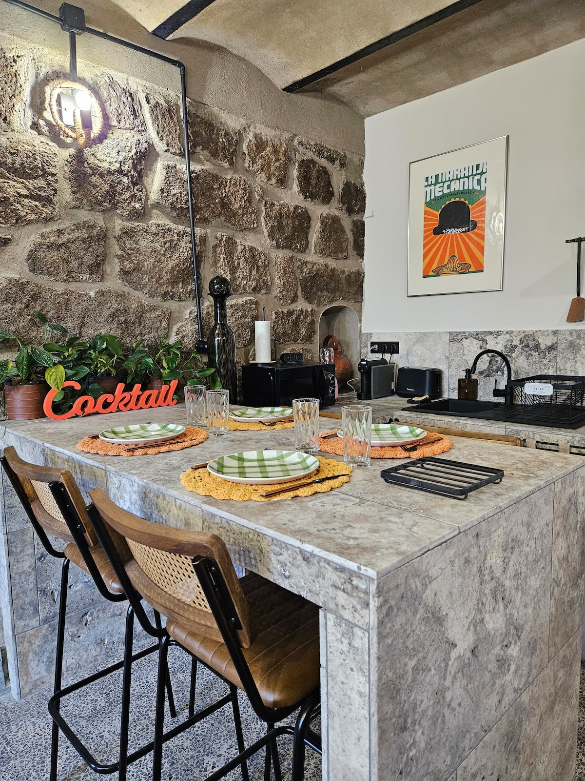 Antigua bodega abovedada en piedra, reformada. Las paredes de piedra y las bóvedas del techo, así como su viejo azulejo terrazzo en el suelo se han conservado voluntariamente para que la habitación mantenga al máximo su encanto y autenticidad. Encontrará todas las comodidades de un gran estudio relativamente moderno con su cocina y equipado, su cuarto de baño completamente renovado y su mesa alta para sus comidas. Para sus noches de invierno, tenga en cuenta que la chimenea funciona a la perfección.
