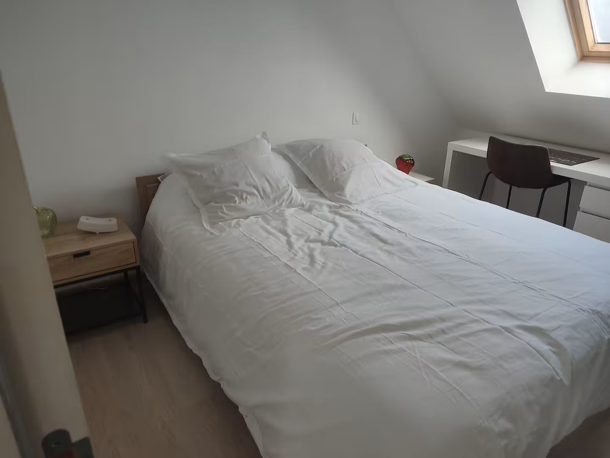 . Más que un alojamiento un hogar dulce hogar, cálido, tranquilo para relajarse después de sus actividades Este apartamento de 50 m2 en espacio abierto con un dormitorio con capacidad para 2 personas y un bebé . Cerca de la estación de tren y el centro de la ciudad a pie o velib, pero también autobús y metro Barrio tranquilo, tiendas de proximidad carnicería, bodega farmacia, tienda de comestibles, prensa de tabaco y a 5 minutos de la galería comercial de Colombia .