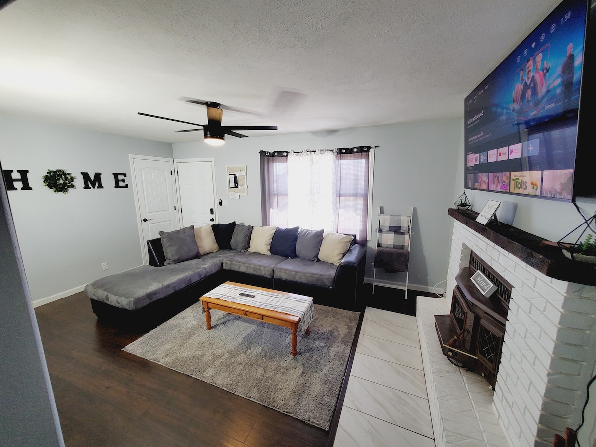 En este alojamiento se respira tranquilidad: ¡relájate con toda la familia! Esta casa de 4 dormitorios y un baño tiene espacio para todos. Esta casa está lista para una reunión familiar, como alojamiento de vacaciones o simplemente para una parada rápida. Tenemos 3 camas tamaño queen y 2 camas individuales. Lista para alojar a 8 personas. Esta cocina está equipada con utensilios de cocina y vajilla para 8 personas. También hay una lavadora y una secadora para tu comodidad. Tenemos televisores inteligentes y conexión wifi gratuita. Se admiten mascotas. Ven a compartir nuestro espacio.