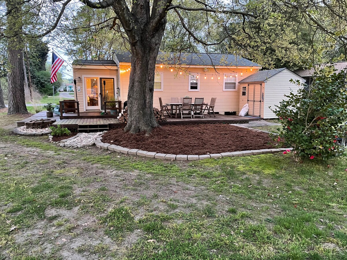 Wake up surrounded by greenery, sip coffee on a quiet porch, and unwind in the hot tub after a day exploring coastal Virginia. Sugartoad Cottage is a calm, plant-filled retreat designed for couples who want comfort, privacy, and walkable access to the best of small-town Chesapeake Bay life. Though located on Mathews Main Street, the cottage feels surprisingly secluded, with gardens, multiple decks, and thoughtfully designed outdoor spaces that make it easy to slow down.