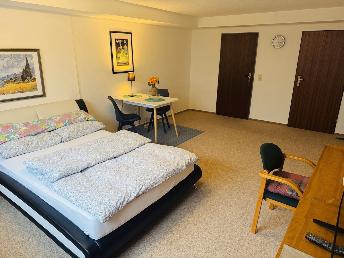 Te damos la bienvenida a nuestros 32 metros cuadrados. Estudio: nuevo, moderno y céntrico con una plaza de aparcamiento gratuita justo enfrente: a 8 minutos de la estación de tren de Friburgo, a 20 minutos de Europapark, a 40 minutos de Basilea y Estrasburgo. ¡Nos encantaría que fueras nuestro huésped!