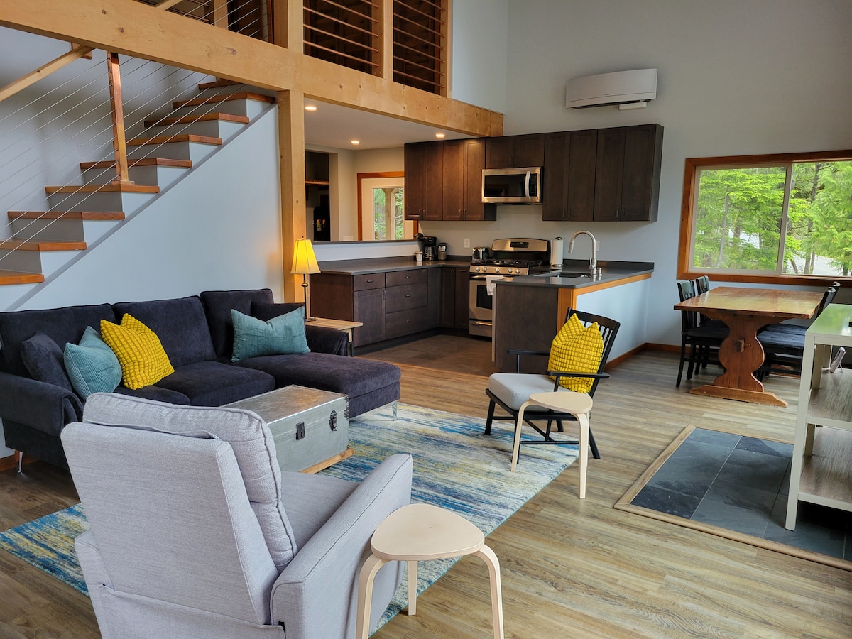 ¡La casita más nueva de Ketchikan! Disfruta de este nuevo apartamento privado a solo 10 millas en coche al norte del centro de la ciudad, a 5 millas de Knudson Cove Marina y del centro de pesca Clover Pass Resort. La nueva construcción te ofrece una cocina con cocina de doble hornilla, muebles de cocina completos para cocinar/comer, microondas y horno de encimera. Tu propia lavadora/secadora en la unidad. Cama tamaño queen. Sofá para relajarse. Mesa de comedor. TV inteligente y wifi ilimitado. Aparcamiento privado y entrada privada con código clave.