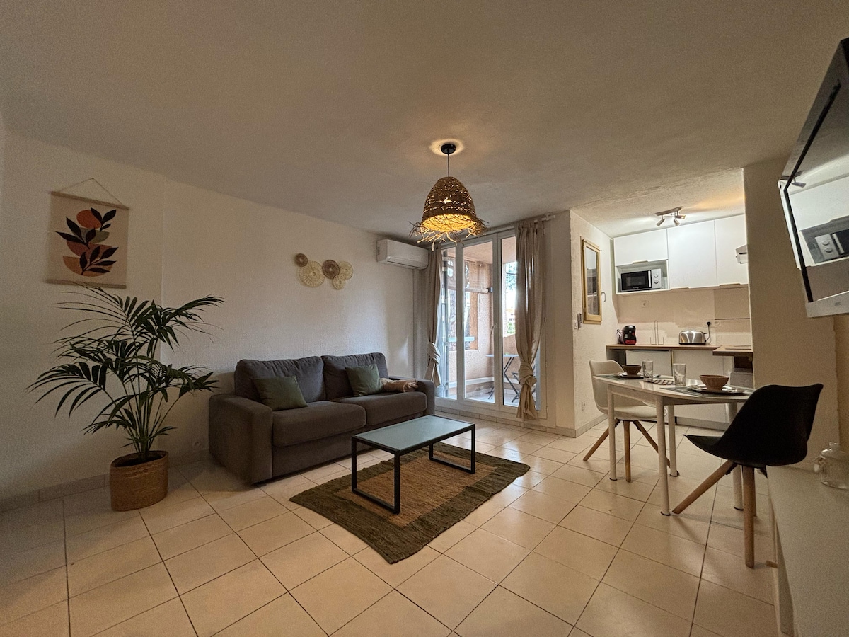 Venga a disfrutar de un agradable estudio reformado, idealmente situado cerca de la playa, la estación de tren y todas las comodidades. El alojamiento está climatizado y tiene una cocina equipada para una estancia cómoda. Una cuna para bebés también está disponible bajo petición. ¡Tendrá acceso a una piscina, así como a las pistas de tenis (material no incluido) de la residencia para unas vacaciones activas y relajantes! Perfecto para parejas, personas que viajan solas o familias con bebé.